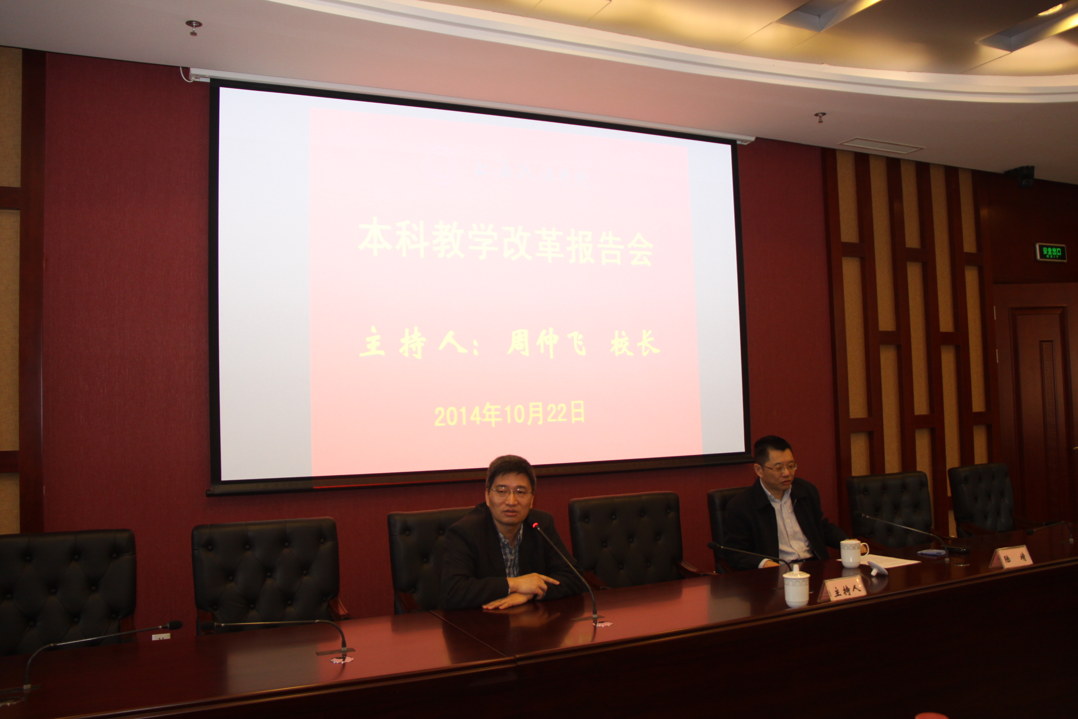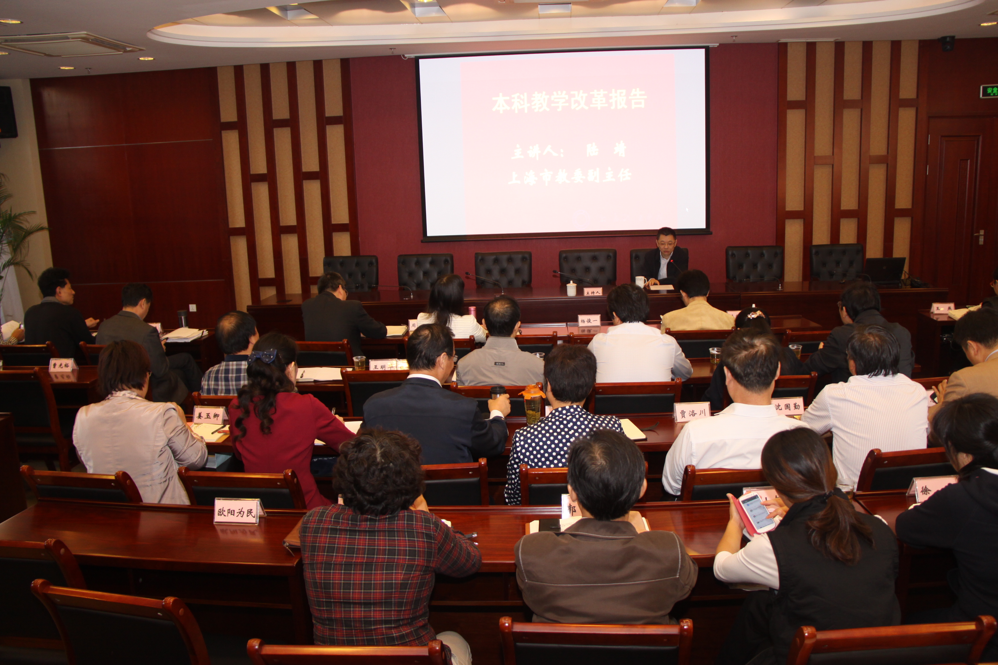 10月22日上午,我校召开本科教学改革报告会。会议邀请上海市教委副主任陆靖、南京大学副校长谈哲敏作专题报告。我校党政领导、各二级学院院长、党总支书记、副院长及职能部门主要负责人参加会议。会议由校长周仲飞主持。