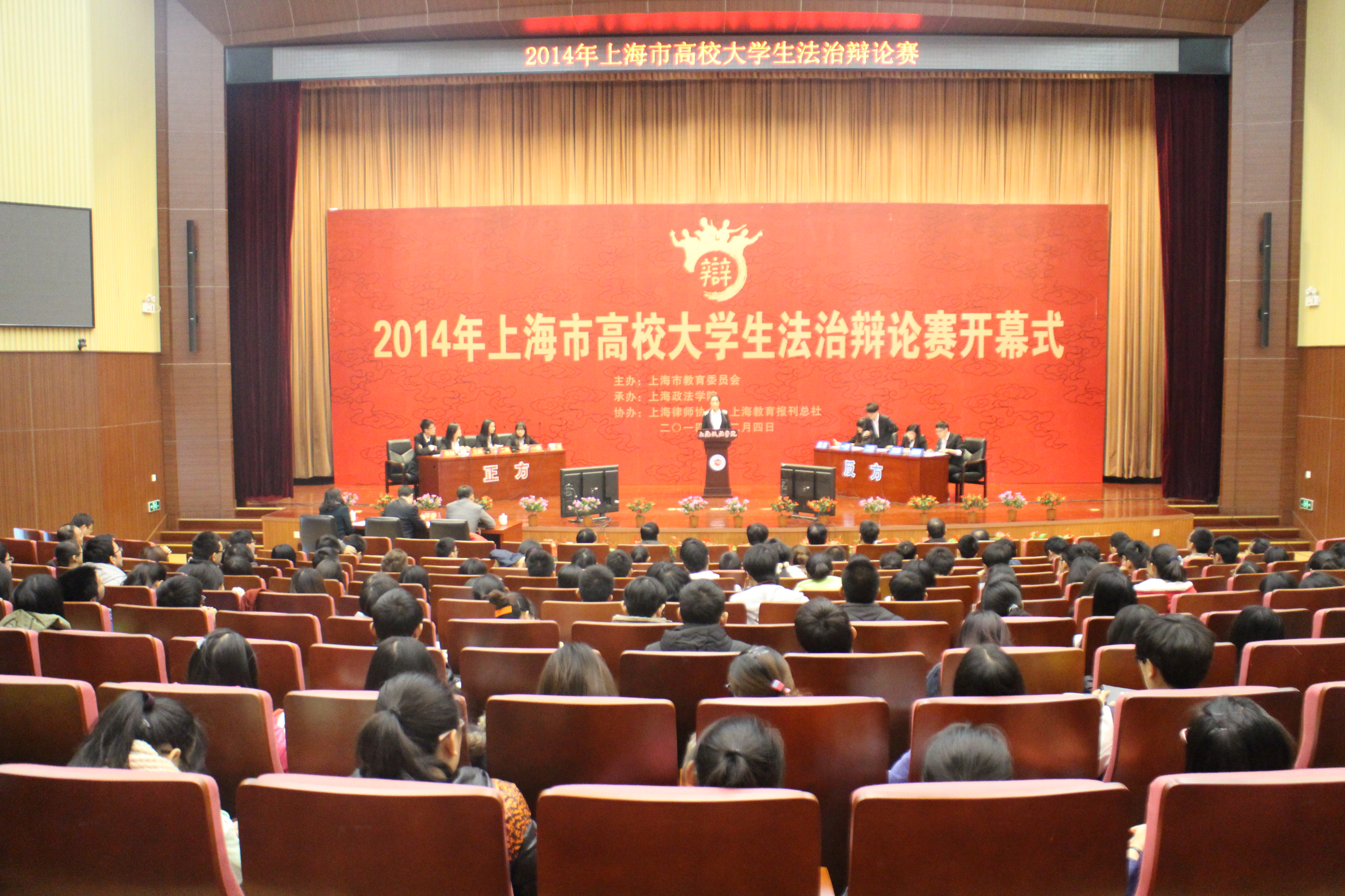 今年12月4日,是党的十八届四中全会确立的我国首个国家宪法日。我校作为一所以法学教育为主的高等院校,作为承办方,在我校建校30周年,也是学校正式回归上海市教委之际,为全面贯彻落实党的十八届四中全会精神,围绕“增强全民法治观念,推进法治社会建设”,在上海市教育委员会的指导下,精心策划、组织本次辩论赛,为上海市纪念首个国家宪法日增添了浓郁的庆祝氛围。