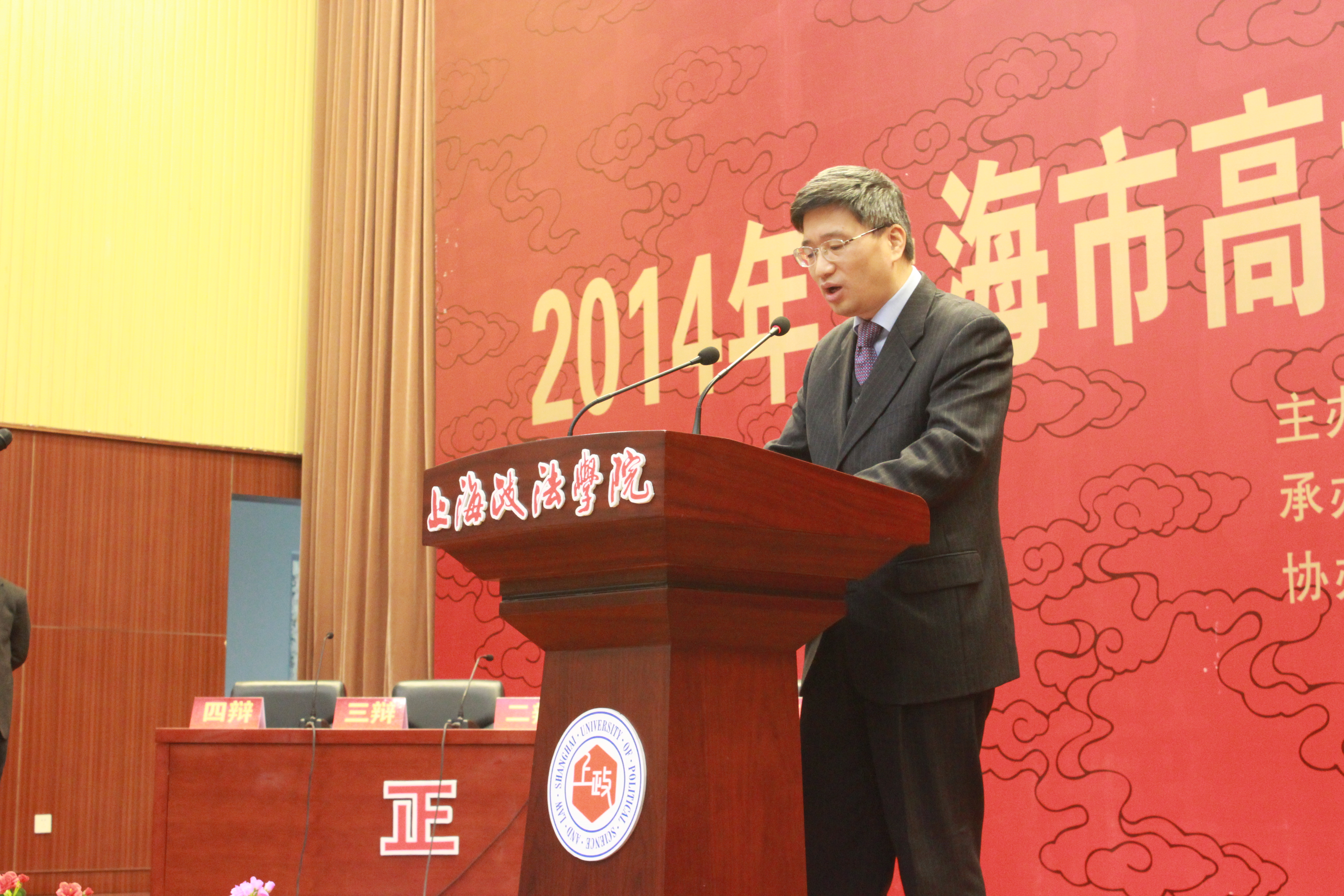 12月4日上午,由上海是教育委员会主办,我校承办的2014上海市高校大学生法治辩论赛启动仪式在我校天马讲堂举行。上海市教卫党委巡视员李瑞阳同志、上海政法学院校长周仲飞教授、上海政法学院党委副书记、纪委书记霍光同志、上海市律师协会秘书长万恩标同志、上海市教育委员会政策法规处副处长吴能武同志、上海教育报刊总社党委副书记、上海教育新闻宣传中心副主任唐洪平同志等出席开幕式,上海市教育委员会政策法规处处长王磊主持开幕式。