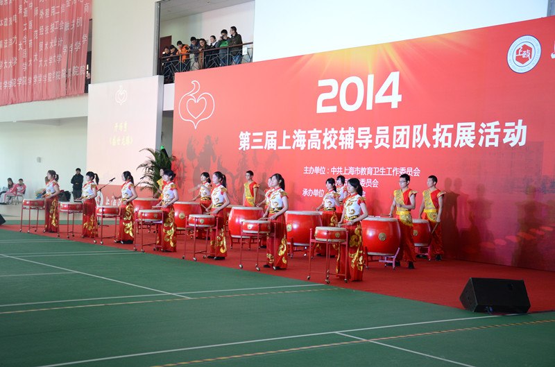 活动伊始,我校学生表演了精心准备的开场鼓乐《盛世龙腾》、舞龙表演《飞龙起舞》,精彩的表演赢得了阵阵掌声。开幕式上,校党委书记杨俊一书记致辞,他代表学校欢迎各高校领导、辅导员的到来,并预祝各高校取得优异成绩。我校体育部主任、活动裁判组负责人谭小勇教授介绍了活动项目。上海市教卫工作党委副书记、上海市教委副主任高德毅教授宣布第三届上海高校辅导员团队拓展活动开幕。