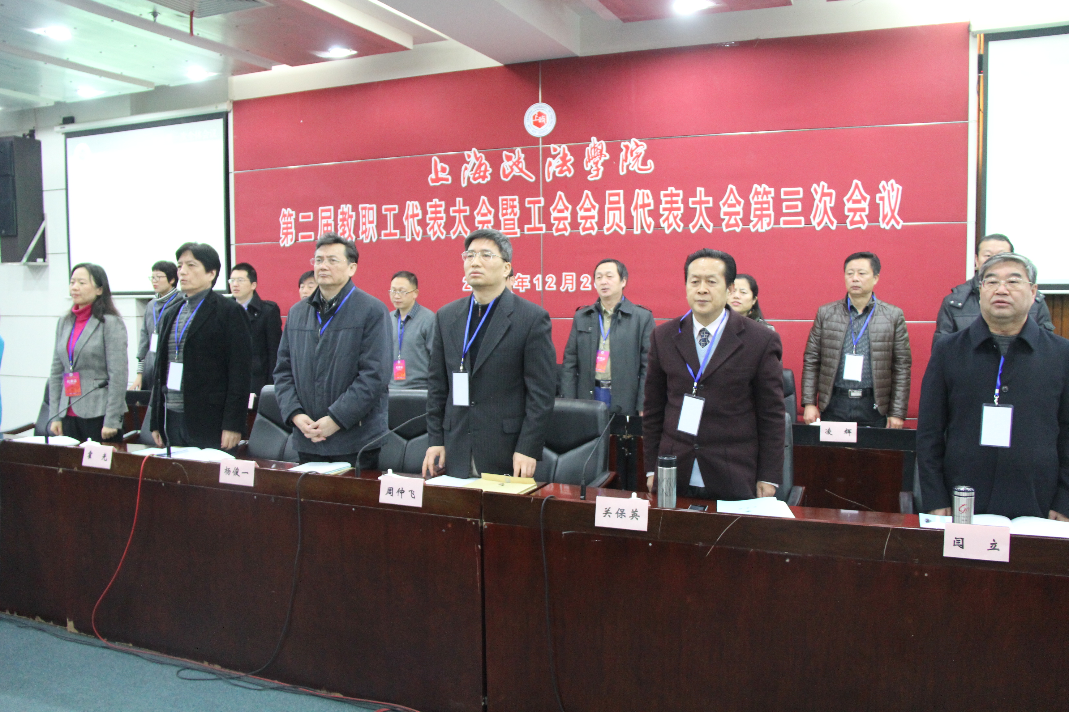 下午三点,大会第二次全体会议开始。大会表决通过了《关于上海政法学院工作报告的决议》(草案)、《关于实施〈上海政法学院章程〉的决定》(草案)、《关于上海政法学院财务工作报告的决议》(草案)、《关于上海政法学院工会工作报告的决议》和《关于上海政法学院工会经审委工作报告的决议》(草案)。