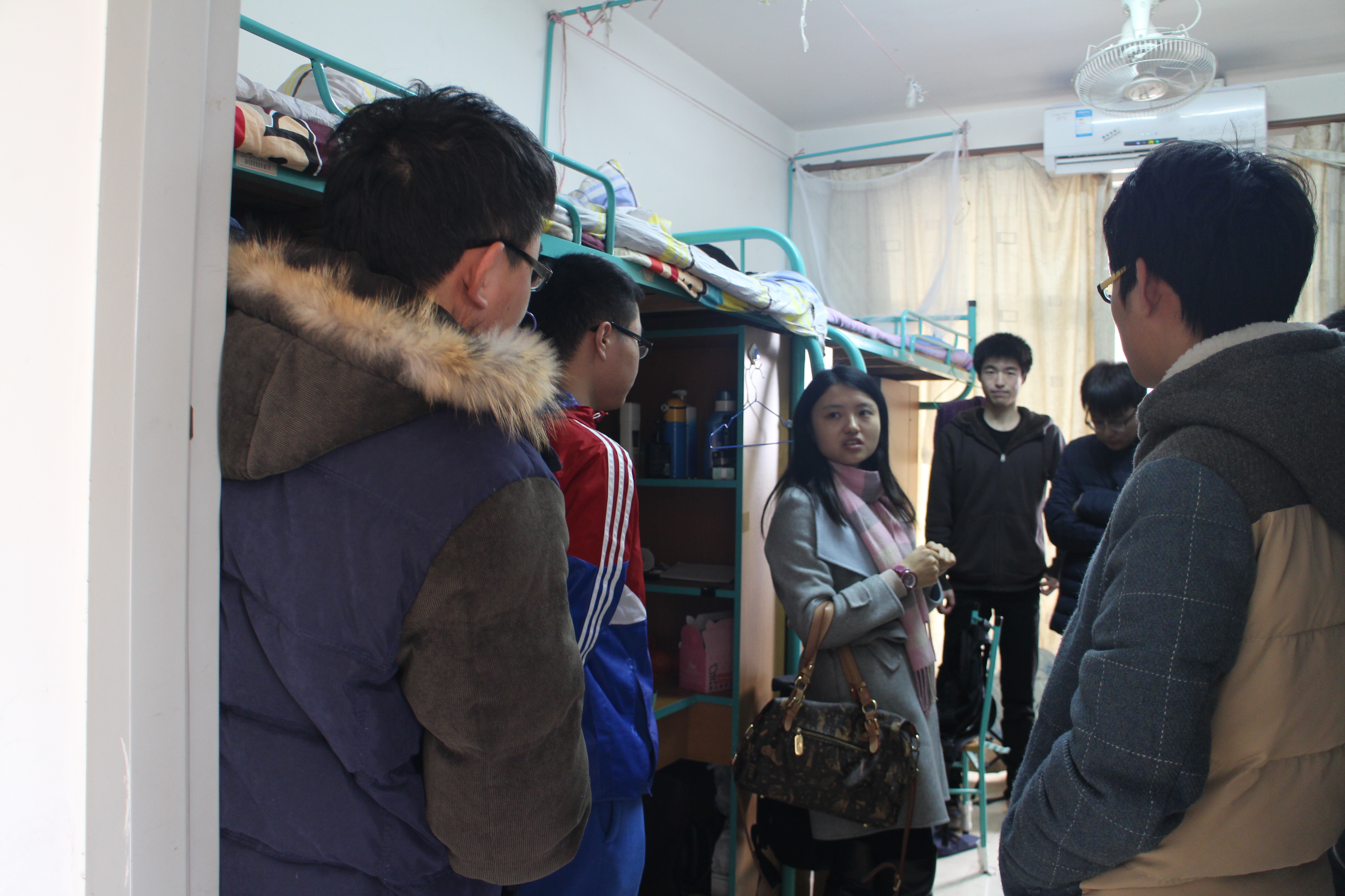 (图为国际法学院辅导员走访寝室开展安全检查和教育)