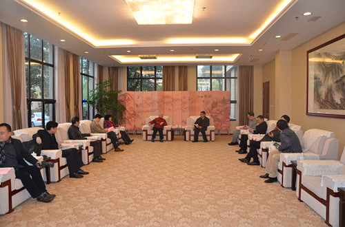王蔚处长在与客人们会谈时,首先对我校的发展历史、学科建设、对外交往、留学生等情况进行了详细介绍,特别强调我校教育培训师资在地方高校中占有优势地位。他还重点介绍了落户我校的中国—上海合作组织国际司法交流合作培训基地的情况,尤其是近一年来培训基地工作团队取得了很大成就,有力推动了培训基地的建设进展。王蔚处长表示,我校一直倡导开门办学、多引进社会化力量。他建议,我校可以与温州商会合作,在培训、咨询、讲座、非学历教育等方面提供服务。