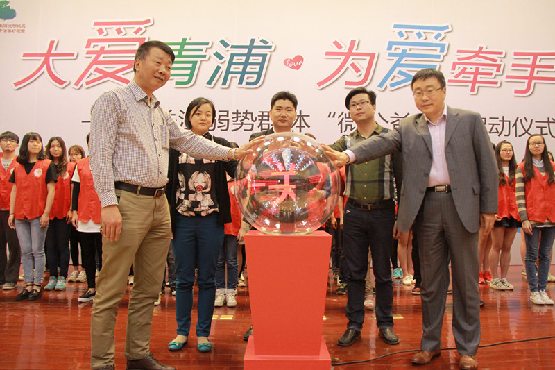 5月5日下午,由青浦区精神文明办公室等七部门主办,我校慈善工作站、经济管理学院慈善义工队及青浦华新康育院共同承办的第二届大爱青浦·为爱牵手——关注弱势群体“微公益月”启动仪式在我校天马讲堂隆重举行。青浦区政府办公室姚小平副主任、精神文明办沈竹林副主任、残联苏建明副理事长、慈善基金会姚缨主任及青浦区华新镇相关职能部门代表,我校学生工作部刘志强部长、彭辉副部长,宣传部徐锐副部长出席活动。近400余名义工志愿者参加了启动仪式。