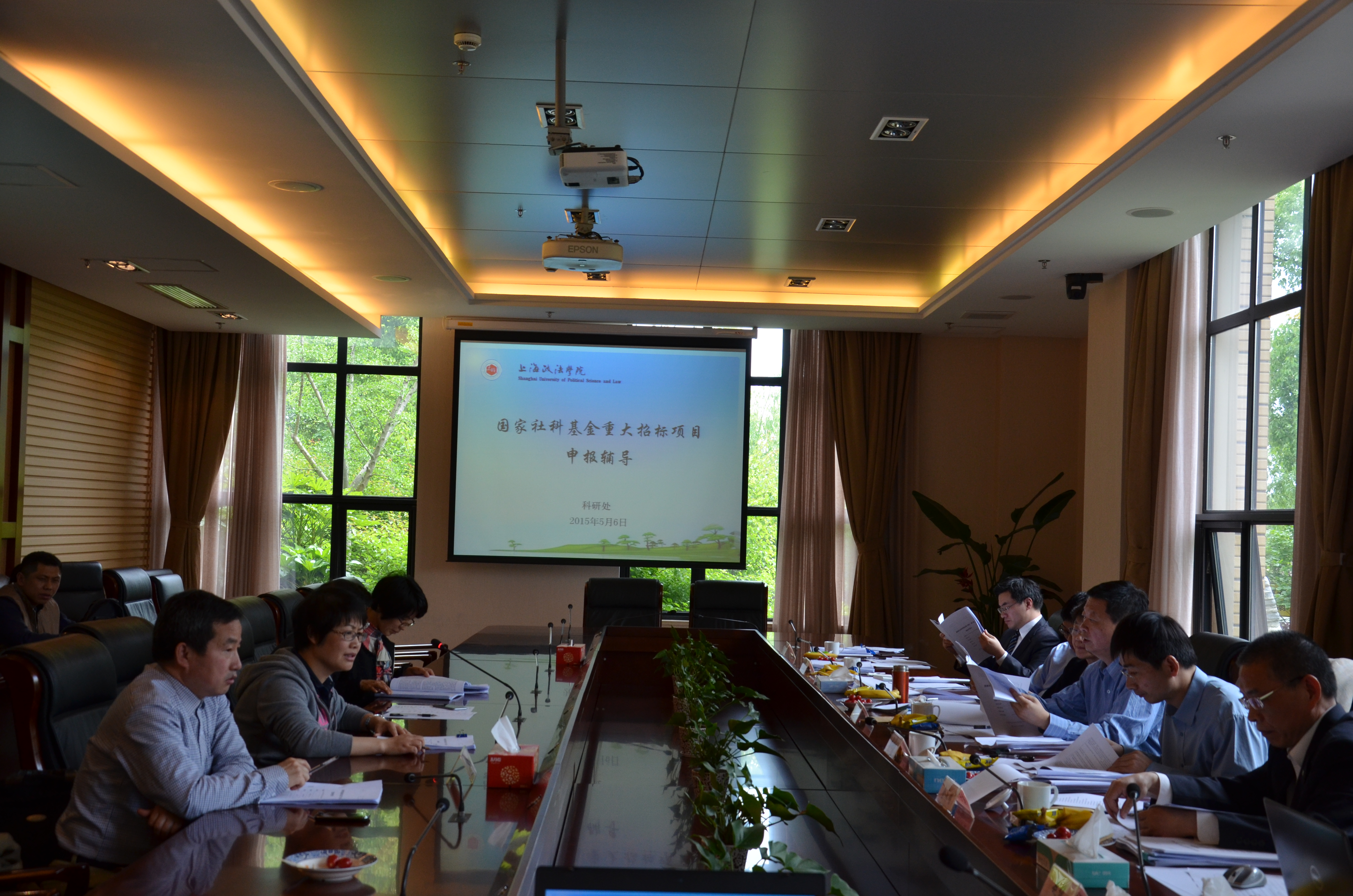 2015年5月6日上午,我校2015年度国家社科基金重大项目(第一批)申报辅导会在我校校部楼101如期举行。申报辅导会由我校科研处组织,科研处副处长赵俊副教授主持,与会评审专家有:华东师范大学的许红珍教授和顾红亮教授、上海师范大学陈恒教授、上海外国语大学毛文伟教授、上海市社科院金永明教授和我校的何平立教授。