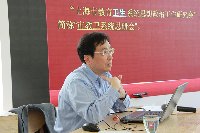 卢天琳秘书长的讲座分为三部分。首先在“思研工作架构与有关说明”部分,介绍了教卫系统思研会的基本情况、剖析了“思政”与“德育”、“教育”等概念,为大家厘清了研究主题。然后,在“思政研究的一般套路”部分,从明确选题思路、确定具体内容、确定内容架构及成果形式及申请书的主要架构几方面,重点就“如何开展思政研究工作”进行了阐述:选题要新颖、独特、实在,并进行三个结合——即与自身专业、本职工作和日常思考与积累相结合。最后,卢天琳秘书长在“思政研究课题的案例探讨”部分,用德育课题申报及研究过程中的实际案例给大家进行了分析和点评。