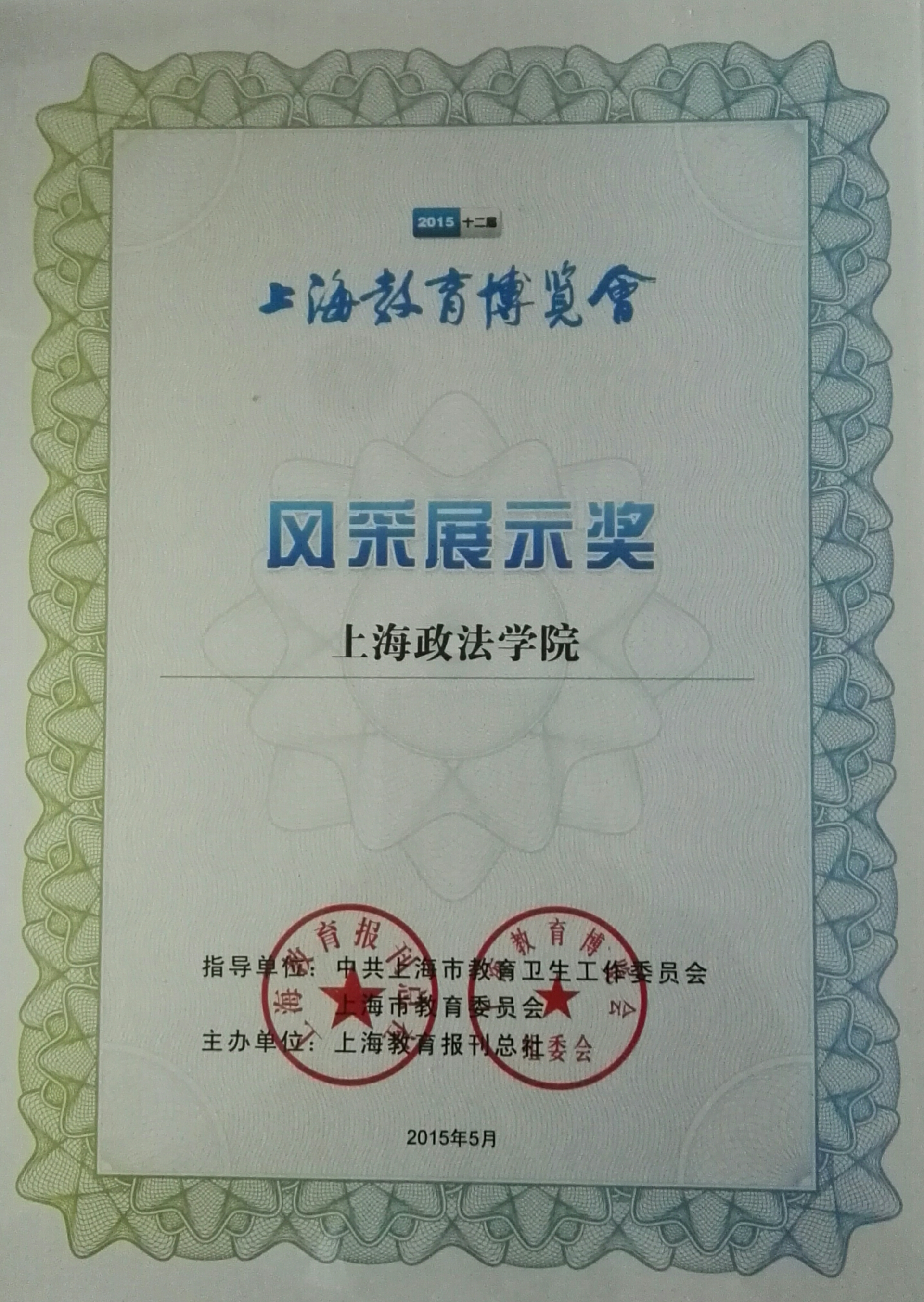 大会对本届教育博览会参展工作进行了总结表彰,我校荣获2015第十二届上海教育博览会“风采展示奖”。(崔长国撰稿)