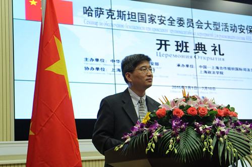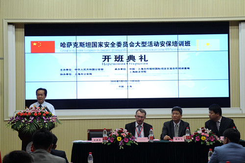 7月2日,由中国公安部主办、上海市公安局协办、中国—上海合作组织国际司法交流合作培训基地(下称“培训基地”)承办的“哈萨克斯坦国家安全委员会大型活动安保培训班”开班典礼在我校隆重举行,这是设立在培训基地自去年5月20日奠基以来承办的第三个外警培训班。开班典礼由我校副校长关保英主持。