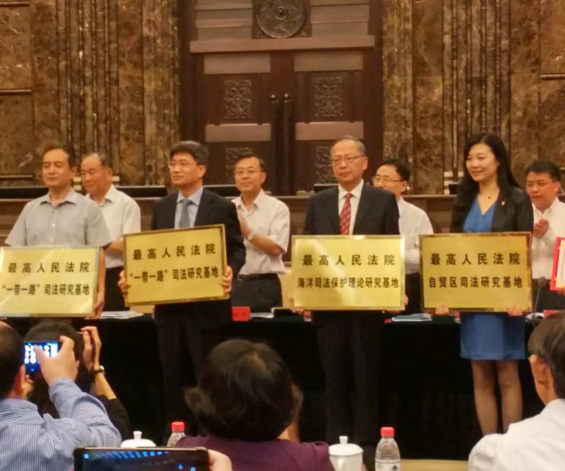 最高人民法院决定在上海政法学院、清华大学、中国政法大学、中国社会科学院法学所设立“一带一路”司法研究基地;在华东政法大学、上海财经大学设立自贸区司法研究基地;在上海海事大学、大连海事大学设立海洋司法保护研究研究基地。