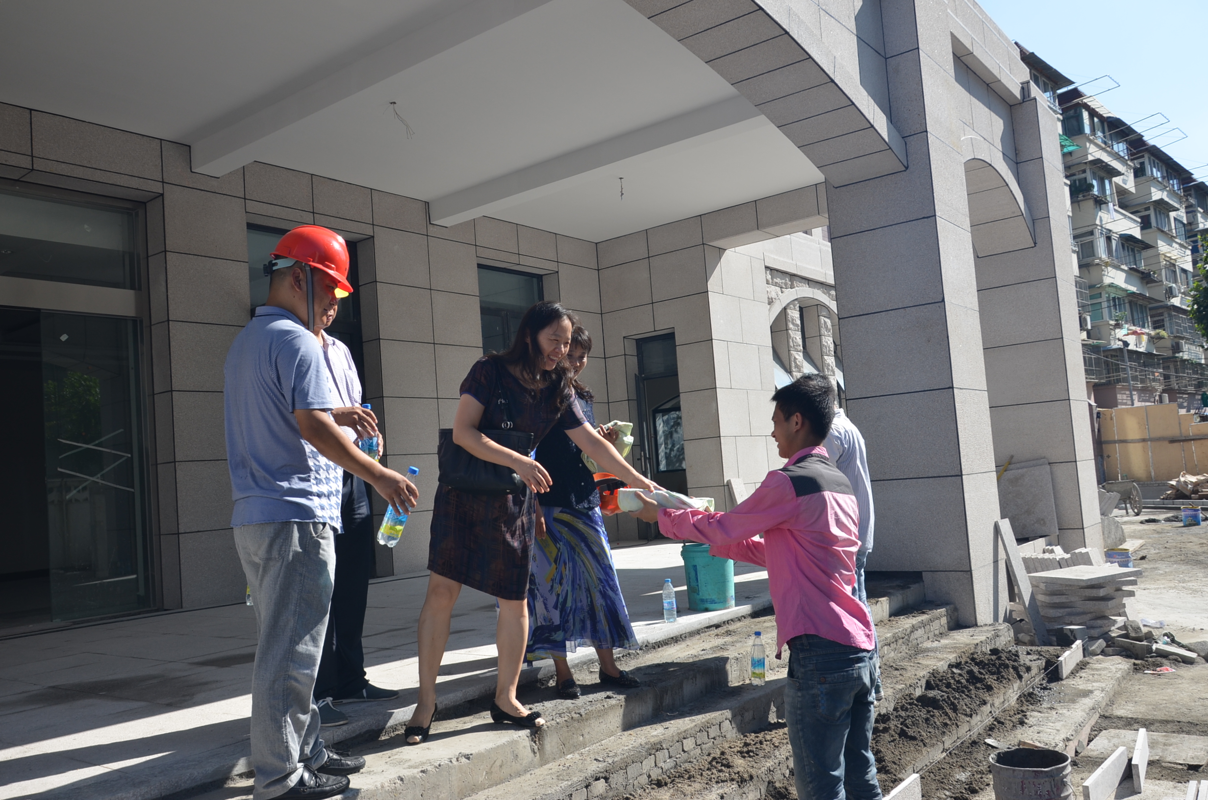 8月6日上午,胡继灵副校长在基建办同志的陪同下,前往普陀校区工地慰问了工程建设人员和现场管理人员。胡继灵副校长首先代表学校对施工单位和监理单位克服困难、战高温、斗酷暑、积极稳步推进普陀校区工程建设进度表示感谢,同时对工作在一线的施工人员和管理人员表示慰问,并给他们送上了防暑降温用品。随后,胡继灵副校长在基建办同志的陪同下察看了工地,对普陀校区项目建设情况和后续工作进行了详细的了解。胡继灵副校长要求基建办务必按计划认真抓好土建工程收尾工作和配套设备安装工作,科学合理地安排施工进度,落实安全管理措施,确保工程保质保量按时安全完成。(潘高荣撰稿 黄思源摄影)