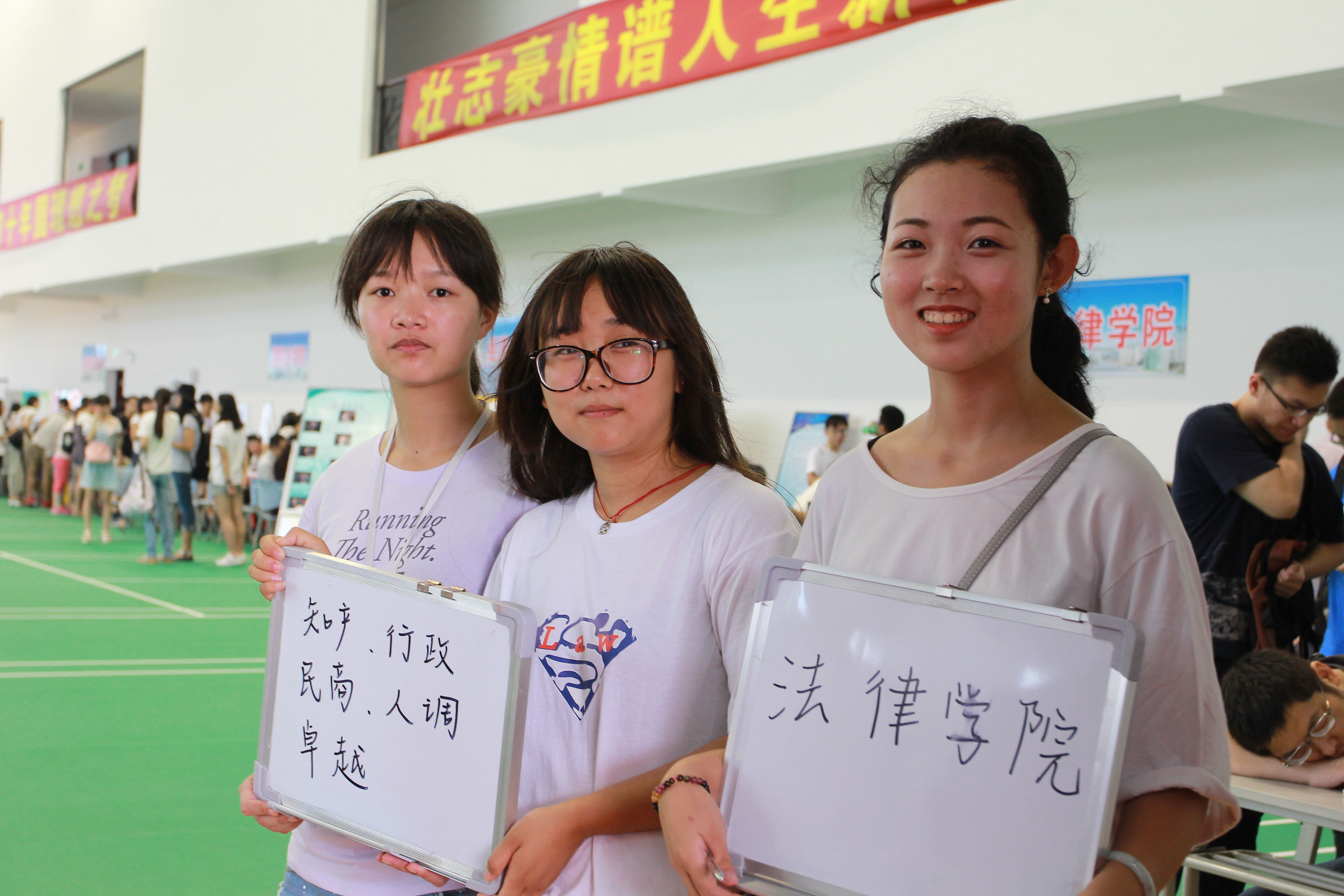 法律学院在放假之前就着手准备迎新的相关事宜,包括对导生、志愿者的安排和相关的宣传工作。对新生登记全部实行电子化,学院里共配备20台电脑。一个班级配备两台电脑,其中一个投入使用,一个备用,以实现电子化、高效率的迎新。国际法学院为营造迎新气氛,挂上了“不愿将就的你就是国际法的下一个何以琛”的横幅,频频引来新生们驻足观看。负责老师说,迎新期间学院相关老师及骨干学生将对新生宿舍进行走访,与每位新生有计划地进行交流,以帮助新生尽快地融入新集体中。刑事司法学院对新生报到采用指纹采集的技术,充分展现了刑司的专业特色。同时,还增加了介绍刑事司法学院的官方二维码,手机客户端,刑司青年的微信公众平台等,让新同学在第一时间获取学院相关资料和通知。经济法学院增加了开学墙,让每一个新生写下对未来的展望和心愿,贴在开学墙上,成为扬帆起航的标志,表达出学院和同学共同的祝愿。并突出了党建的了引领作用,设置党旗,给学生发放党建学习手册。