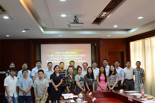 为庆祝习近平主席宣布在我校设立“中国—上海合作组织国际司法交流合作培训基地”两周年,9月11日下午,培训基地建设办在我校行政楼413会议室召开两周年纪念座谈会暨培训基地十三五规划及中长期规划研讨会。会议由国际交流处处长王蔚主持。副校长关保英、教务处处长陈剑峰、科研处处长张远新、发展规划处处长石其宝、经济法学院院长胡戎恩、国际事务与公共管理学院院长汪伟民、国际交流学院院长欧阳美和、经济法学院副院长杨华、国际交流处副处长范铭超、国际交流学院党总支副书记魏传成等出席会议并发言。