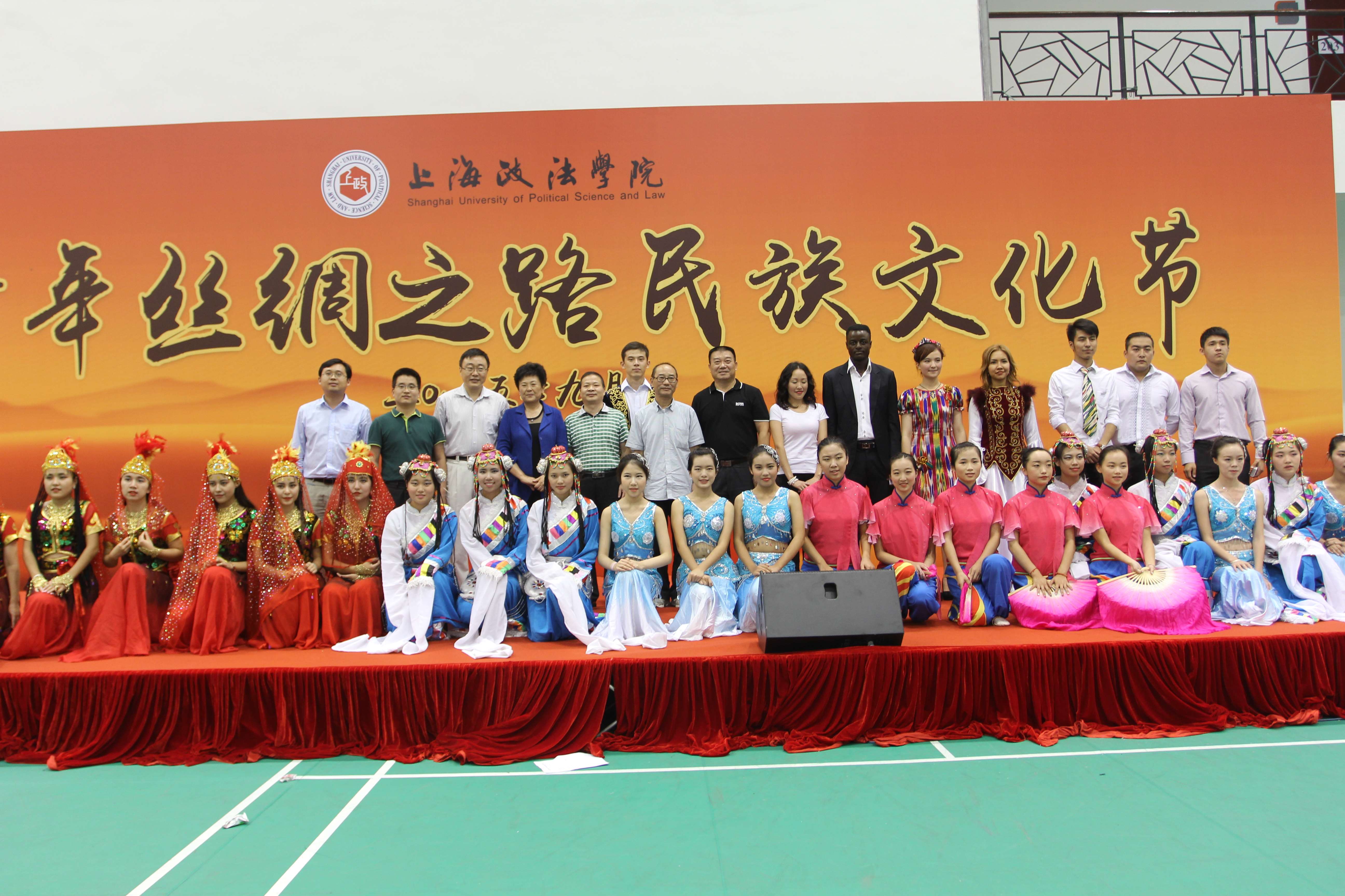 9月25日,我校2015年丝绸之路民族文化节在训练馆开幕。上海市教委后勤处处长王立慷,上海德育发展中心杨智勇,新疆工程学院李玲教授,上海政法学院学工部(处)部(处)长刘志强,保卫处处长郭玉生,国际交流学院院长欧阳美和、党总支副书记魏传成,保卫处副处长马洪亮及2015年少数民族教育管理培训班81名学员参加文化节。我校300余名留学生、各民族学生共享了文化节盛宴。