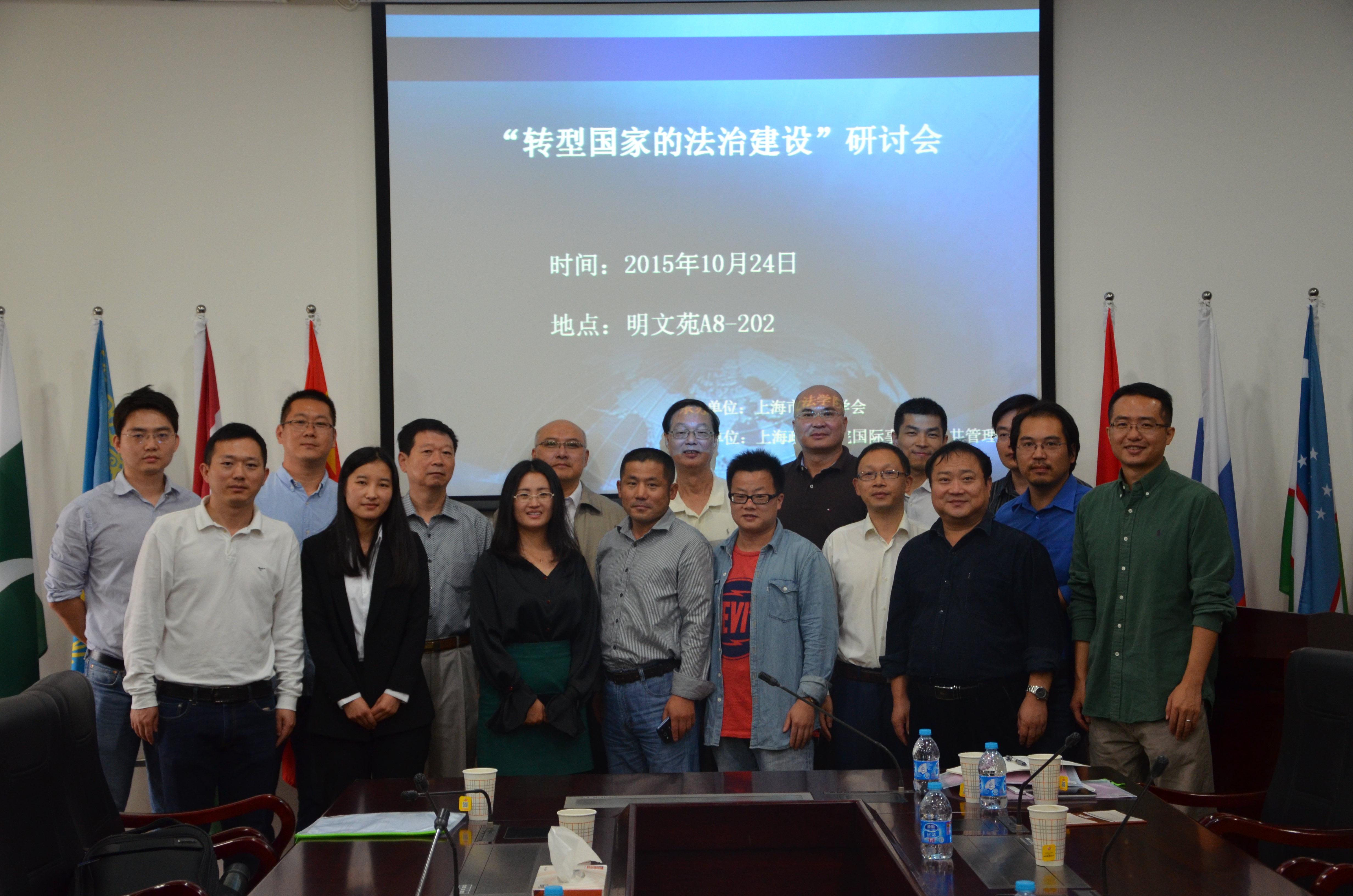 10月24日上午,上海市政治学会主办、我校国际事务与公共管理学院承办的“转型国家的法治建设”研讨会,在明文苑A8-202会议室召开。来自复旦大学、上海交通大学、上海大学、上海市委党校、《探索与争鸣》杂志社和我校的20多名专家学者参加了这次会议。“转型国家的法治建设”研讨会不仅是我校学术活动月的重要活动之一,也被列入了“上海市社会科学界联合会第九届学术活动月”项目。