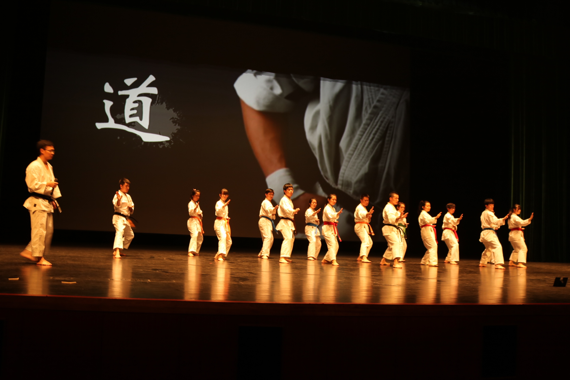 随着灯光的聚集,来自吉他社外青松公路乐队的三曲连奏拉开了汇演的序幕。职业规划与发展协会带来妙趣横生的小品《加油!练习生》。文心国学社推出的舞蹈《文龙与重回汉唐》带领观众穿越千年,感受传统文化的典雅与唯美。蔚蓝音乐社实力唱将带来倾情演唱。鹿鸣社则糅合当下热点,将配音剧《十大关键词》搬上舞台。司音、茶道、书法、崧石印社携手艺术团及WAO舞社献上的舞蹈《采薇》、鼓表演及爵士舞,更是给现场观众带来一场视觉盛宴。空手道社和FLAX乐队也不甘落后,纷纷用精彩的演出赢得阵阵掌声。