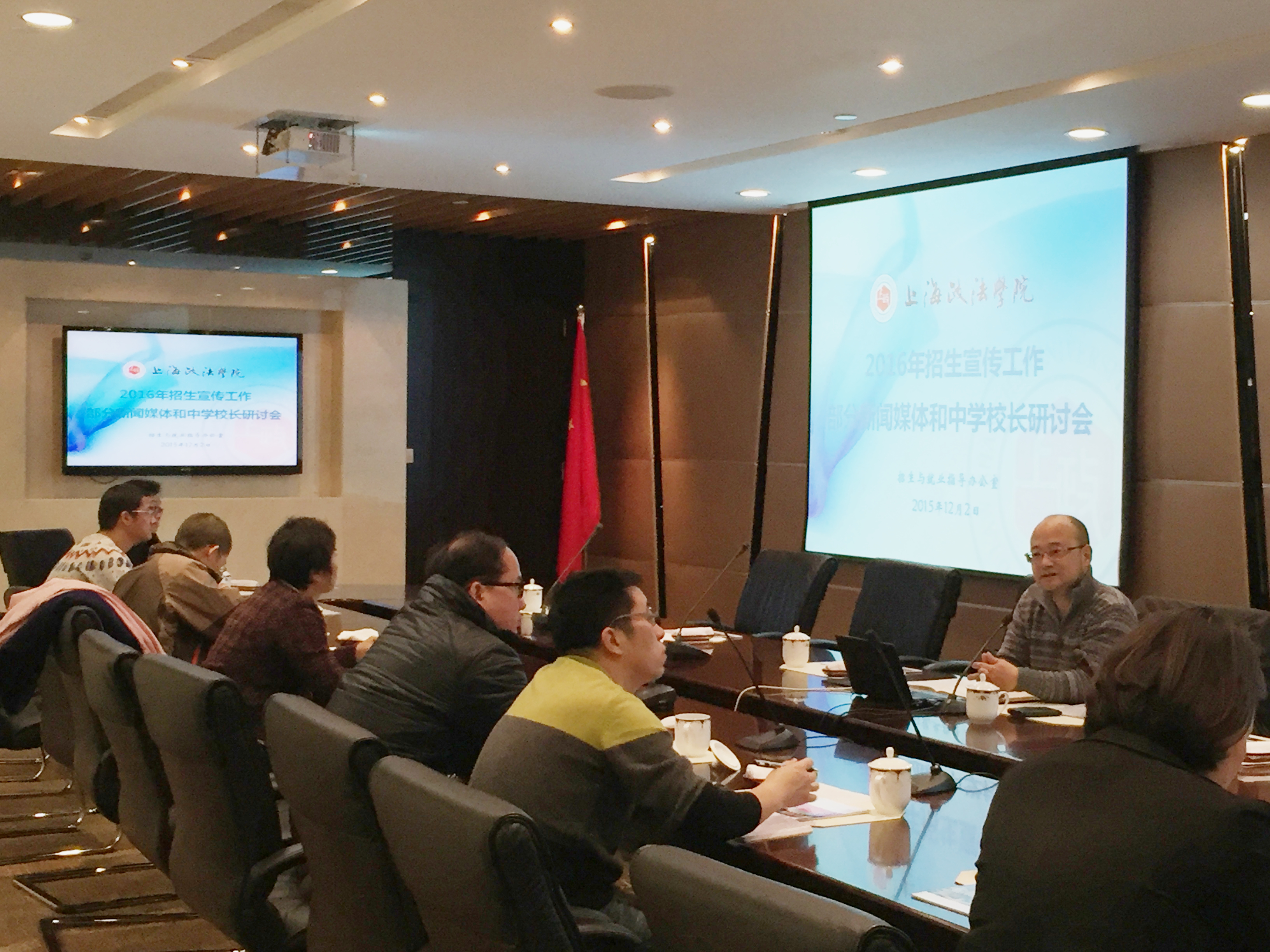 为了加强招生宣传工作,深化我校与重点中学之间的交流合作机制,12月2日下午,我校招生就业办在上海市东方公证处召开2016年招生宣传工作新闻媒体和重点中学校长研讨会。邀请了包括上海市建平中学、敬业中学、晋元高级中学、新中高级中学、上理工附中等在内的多家市、区级示范性高中校长、教导主任,以及上海电视台、上海人民广播电台、中国青年报、新民晚报等多家主流媒体记者参加研讨会。会议由招生与就业指导办公室主任张军主持。