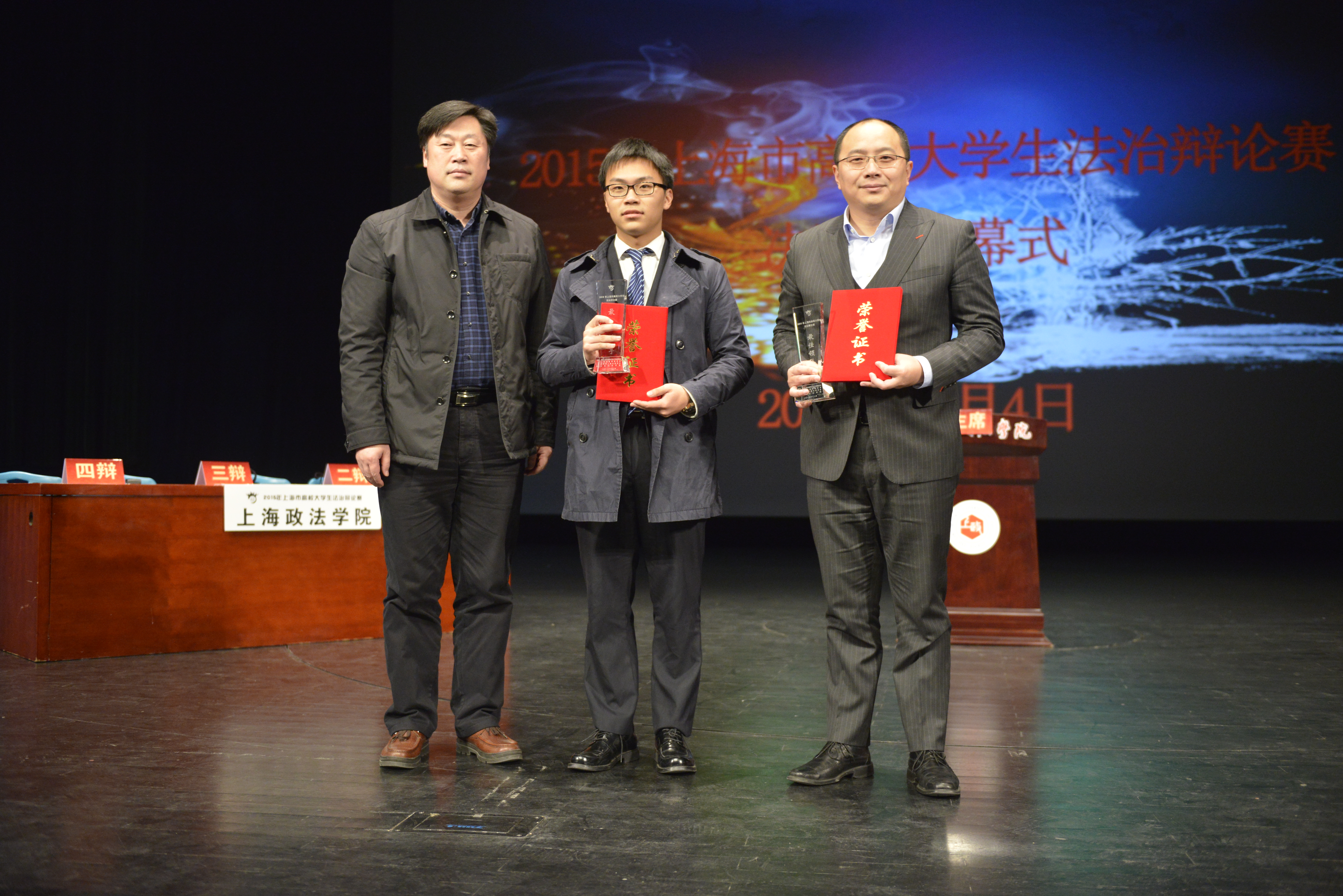 经过评委们的现场打分,最终评出“最佳口才奖”、“最佳风度奖”、“最佳辩手”和“最佳领队教练”等四个个人奖项和若干个集体奖项。上海政法学院党委副书记、副校长周银娥宣读了“2015年上海市高校大学生法治辩论赛”的获奖名单。在场嘉宾向获奖个人和集体颁发了获奖证书和奖品。