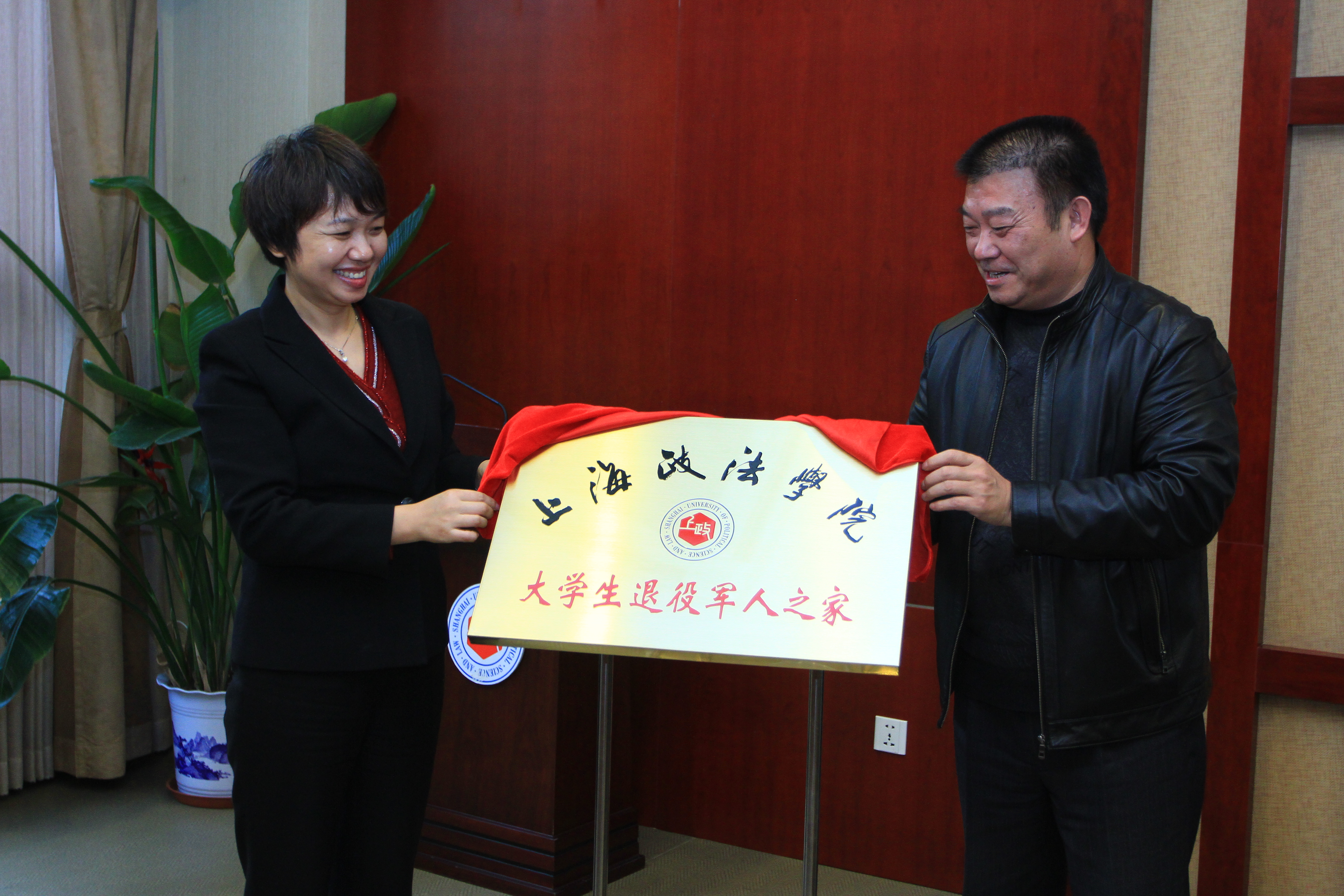 校党委副书记、副校长周银娥为“大学生退役军人之家”社团揭牌并讲话。周银娥副书记在讲话中指出,学校圆满完成了2015年度的征兵工作,受到了市教委、青浦区征兵办等部门的肯定。当前,高校已经成为征兵工作的主体,要将征兵工作作为常态化的工作,纳入学校育人工程中去,加强统筹协同,形成长效机制,鼓励大学生踊跃参军,为国防和军队现代化建设多作贡献。