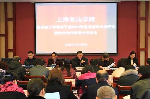 12月29日下午,学校党政领导班子和领导干部2015年度(绩效)考核民主测评会暨教代会代表民主评议会在校部楼107会议室召开。学校两委委员、中层正职和负责工作的副职、教代会代表、民主党派代表、离退休代表90余人参加了会议。会议由校长周仲飞同志主持。