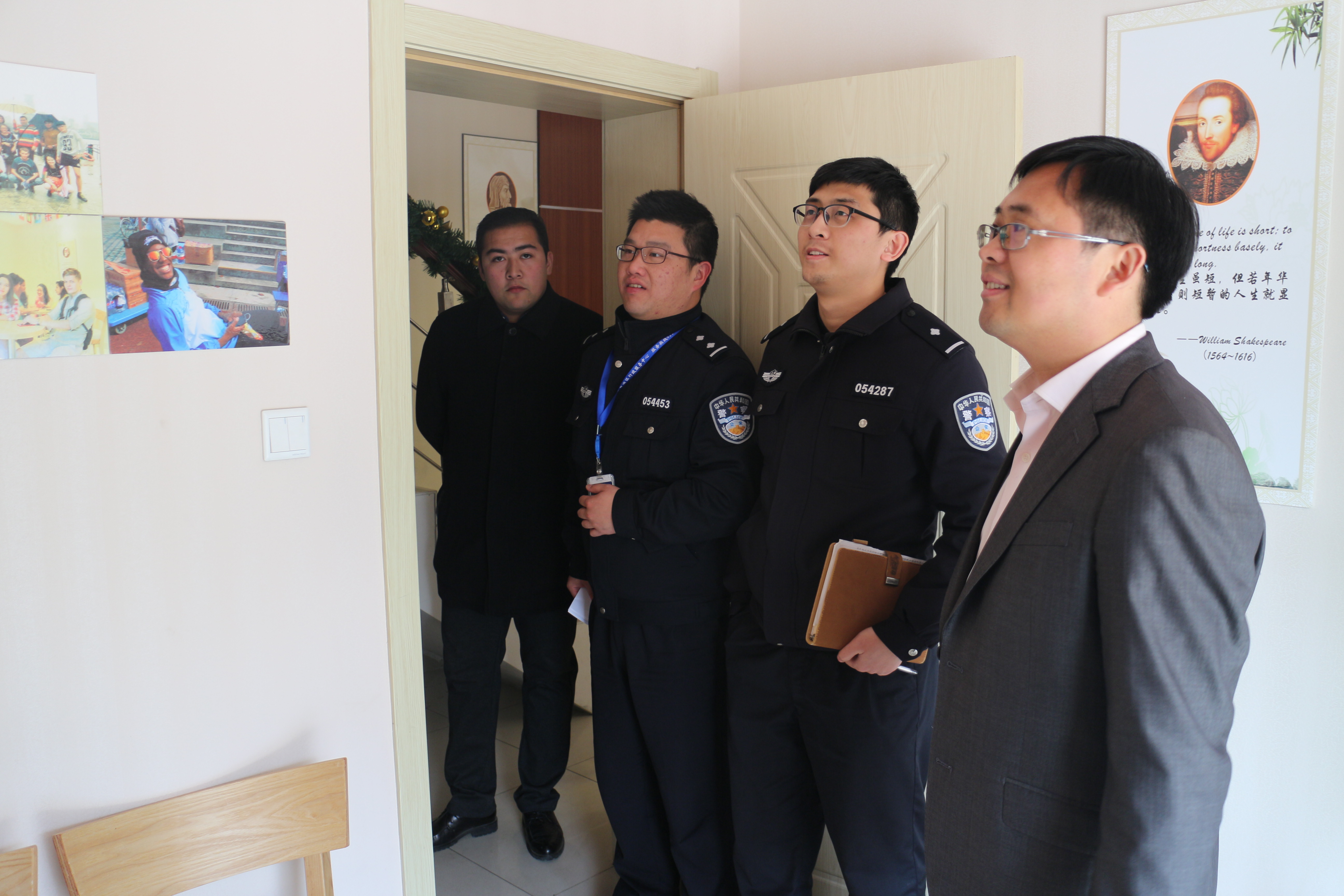 2月25日下午,青浦区出入境管理局的朱森警长和冯晓雷警官前来我校,就留学生涉外管理等工作进行指导。国际交流学院院长欧阳美和教授、党总支副书记魏传成等接待了朱森警长一行并座谈。