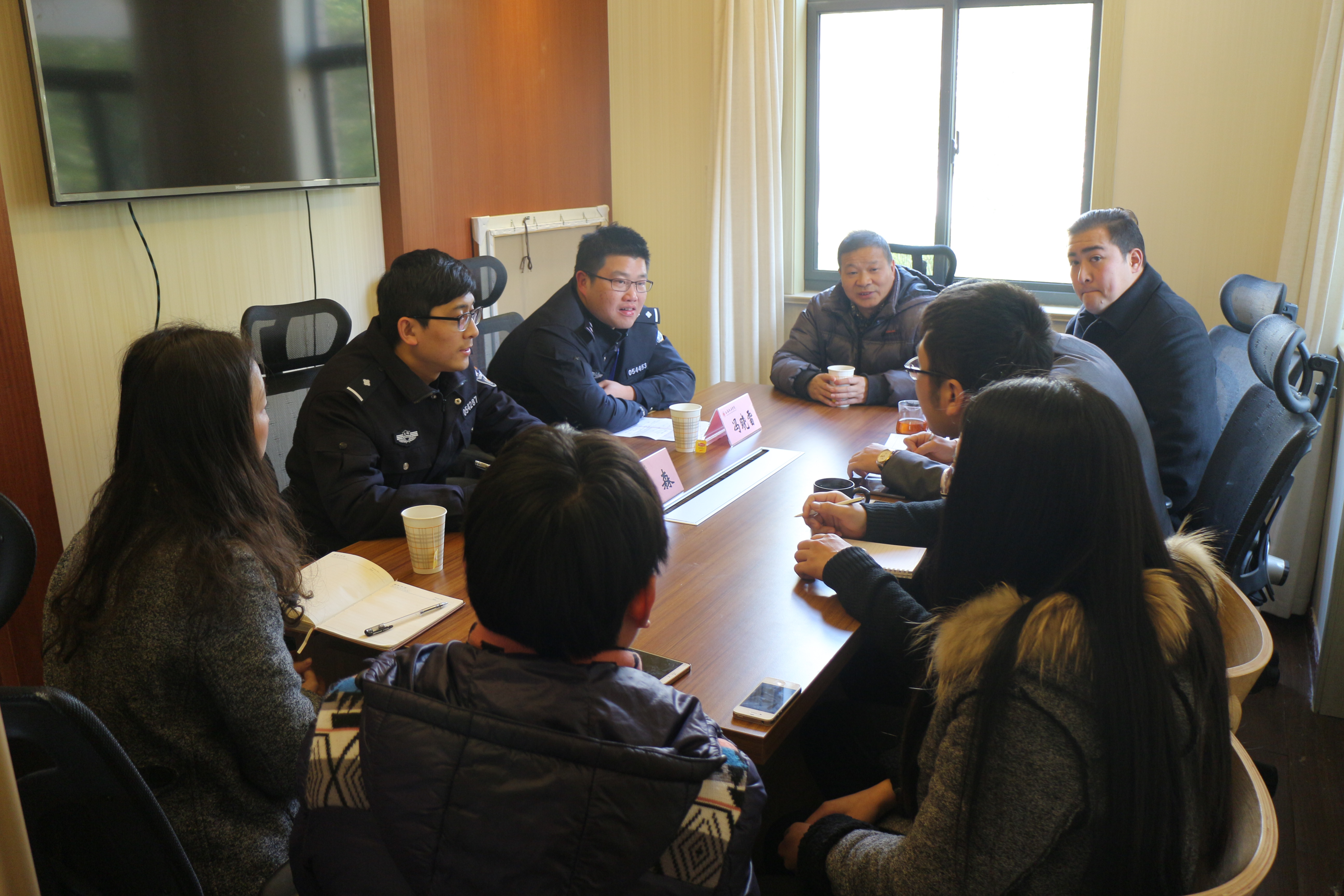 座谈中,朱森警长和冯晓雷警官结合当前国内外的形势对留学生的签证、校外住宿、非法打工、签证办理等工作给予了针对性的指导,详细解答了国际交流学院相关负责老师提出的问题,并表示今后将更多的采取“送警上门”的方式,宣传国家出入境管理的相关规章制度,服务学校和留学生。(刘子萌撰稿 钟振垚摄影)