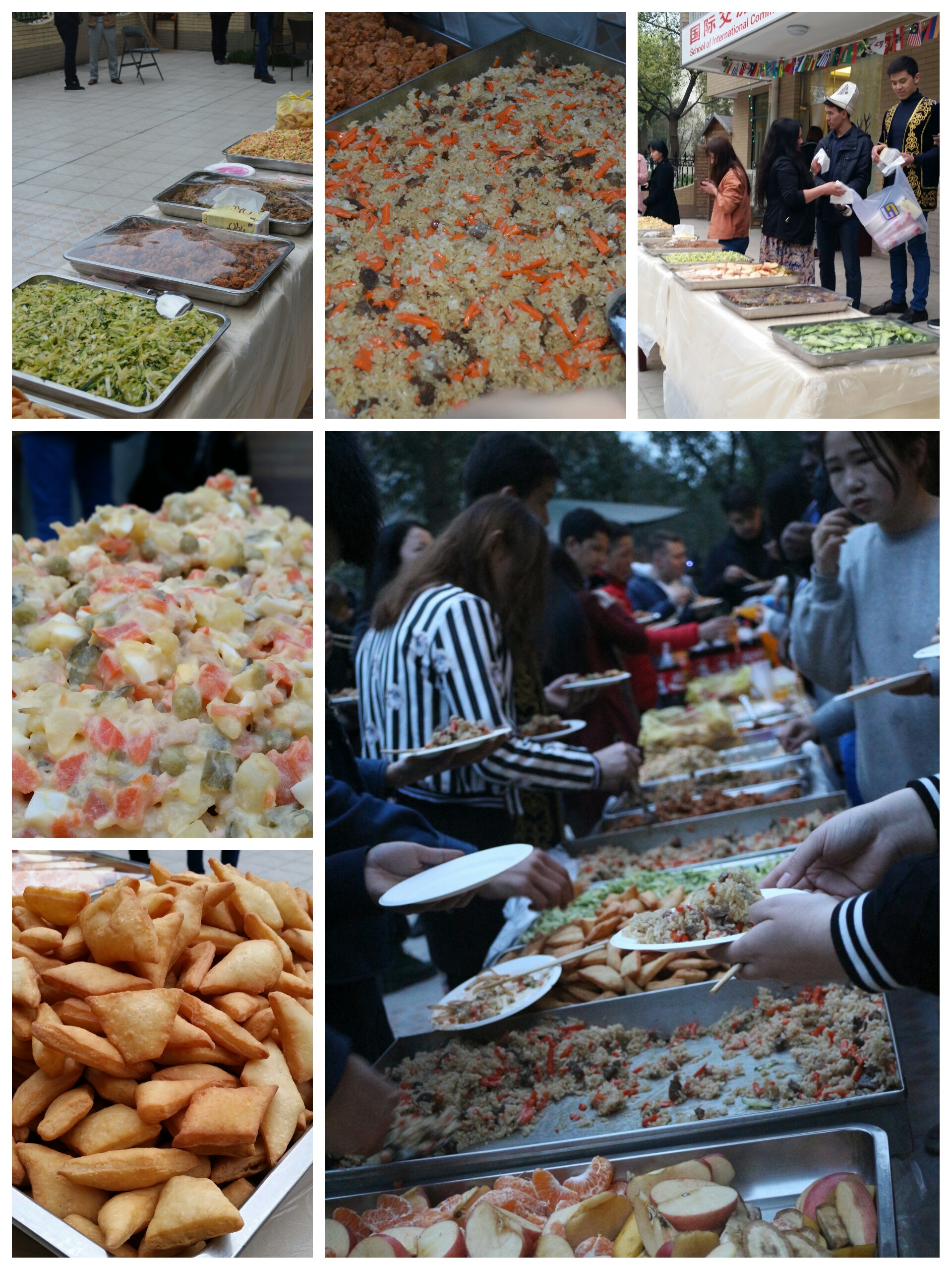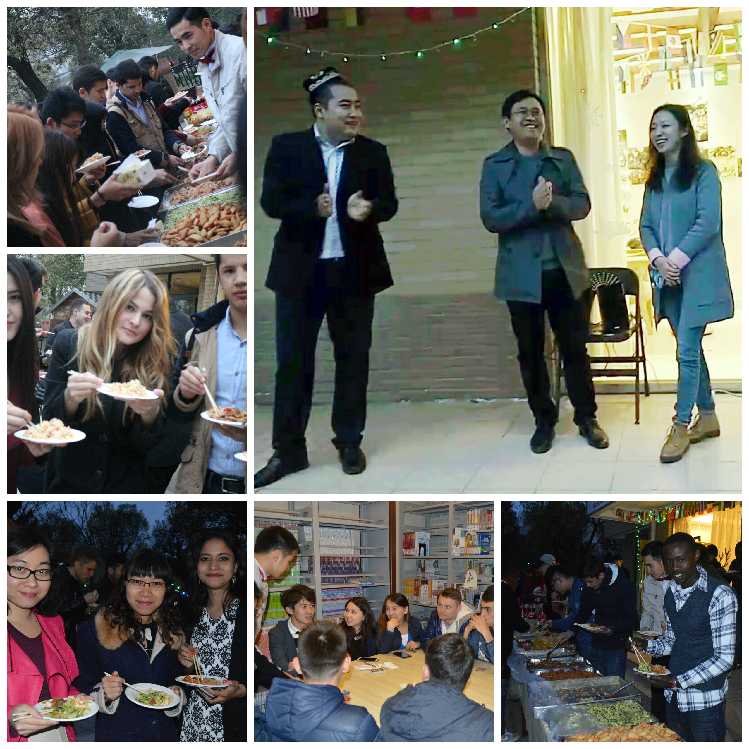 下午五时许,来自各国的留学生们开始陆续将备好的美食端入留学生之家的庭院中,留学生事务中心的干事们也将现场的灯光等一一布好,所有活动有条不紊地逐渐展开。
