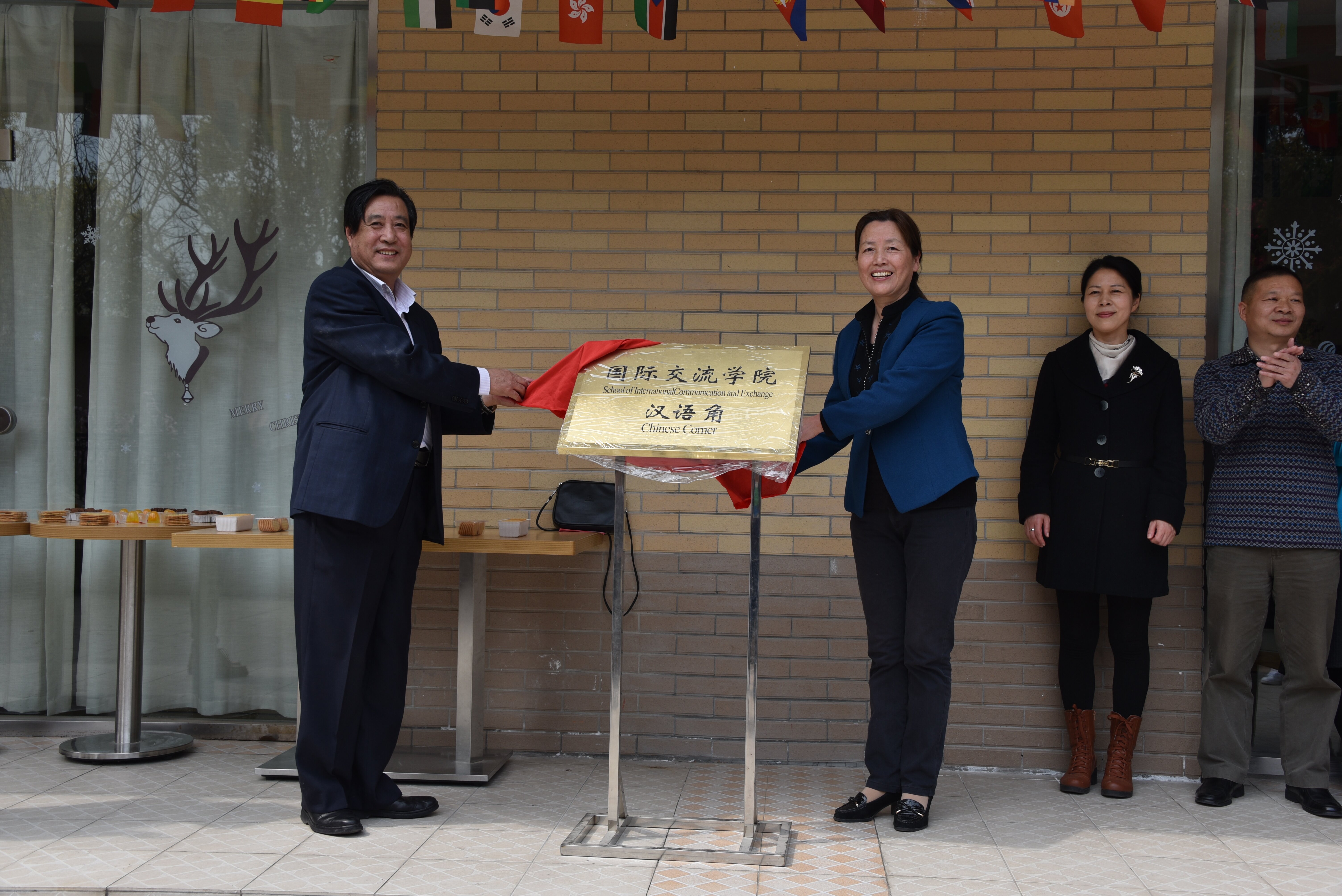 首先,周怡老师为大家简述了国际交流学院的发展情况,并介绍到场的领导和嘉宾。接着,阿拉法特老师介绍了本次汉语角和结对仪式的筹备情况。之后,于书诚老师和沃国成老师为汉语角揭牌。