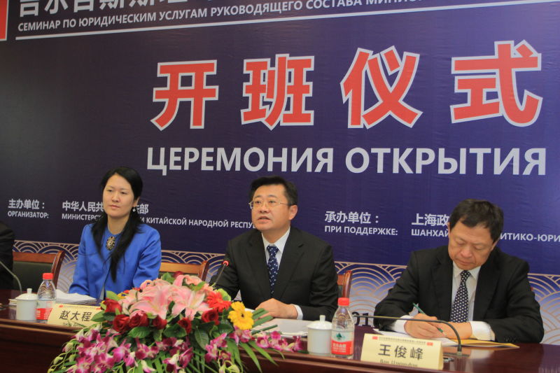 4月19日,由中国司法部主办的“吉尔吉斯斯坦司法部法律服务管理人员培训班”在上海政法学院正式开班。中国司法部副部长赵大程,吉尔吉斯斯坦司法部副部长库图耶娃˙阿依别拉梅特˙别克图洛夫娜出席开班仪式并致辞。持续一周的培训将侧重让吉尔吉斯斯坦司法部官员了解中国依法治国的执政理念、探讨中吉两国法律服务合作的机制,加强双方法律服务领域的合作。