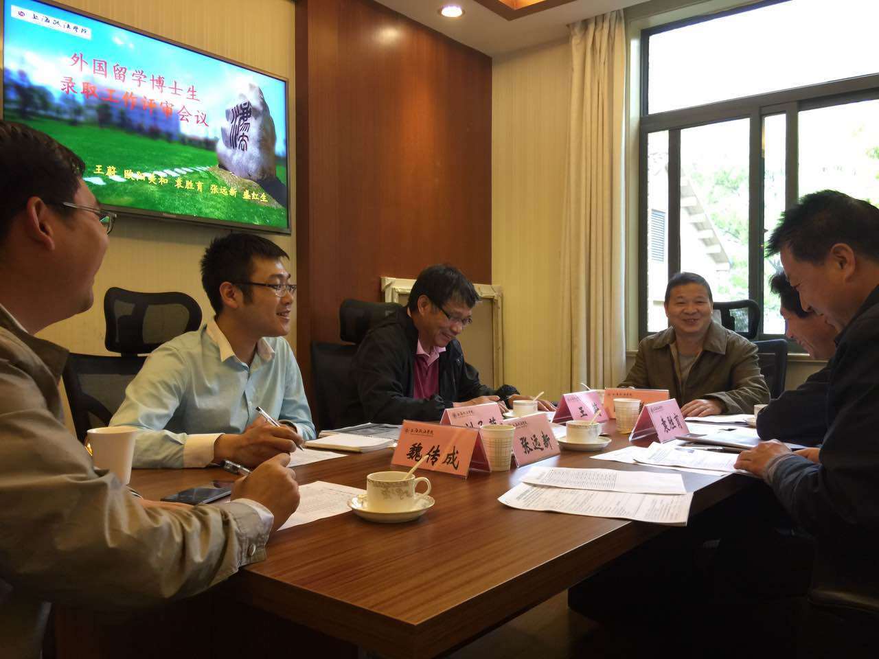4月20日下午,我校2016年度外国留学生博士生录取评审工作会议在国际交流学院(留学生办公室)会议室召开。博士研究生联合培养导师组王蔚教授、袁胜育教授、张远新教授、盛红生教授及国际交流学院院长欧阳美和教授、相关招生负责人参会。