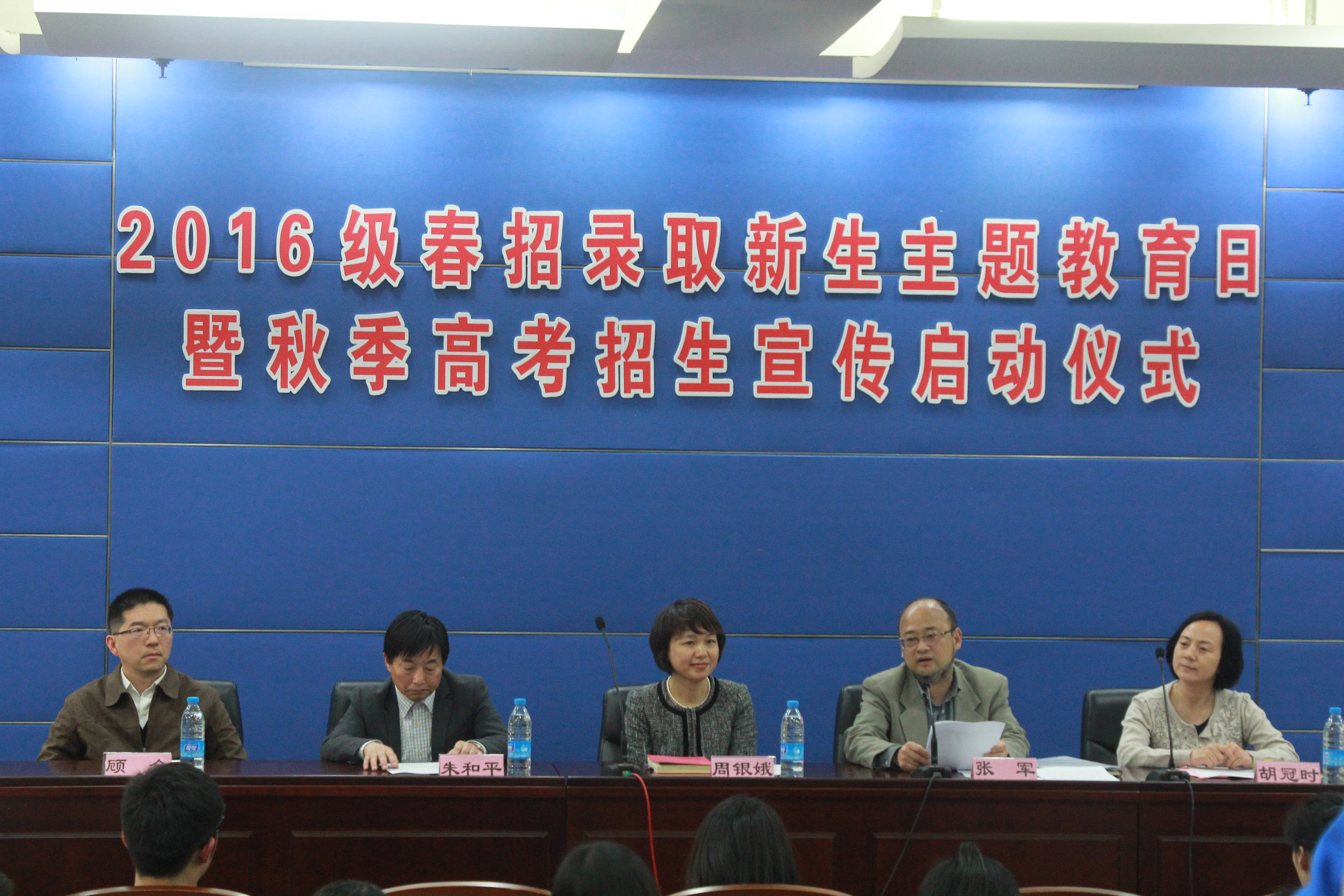 今年是上海市新春考改革方案试点实施的第二年,为了加强今年春招录取的应届高三学生后续学习安排管理工作,根据市教委关于春招试点高校“应对春考录取考生提出本校入学准备要求以及与录取专业相关的学习建议和指导,以加强对学生后续学习指导的针对性”的精神,结合秋季高考招生宣传工作,我校于4月28日下午举行了“2016级春季招生录取新生主题教育日活动暨秋季高考招生宣传启动仪式”。