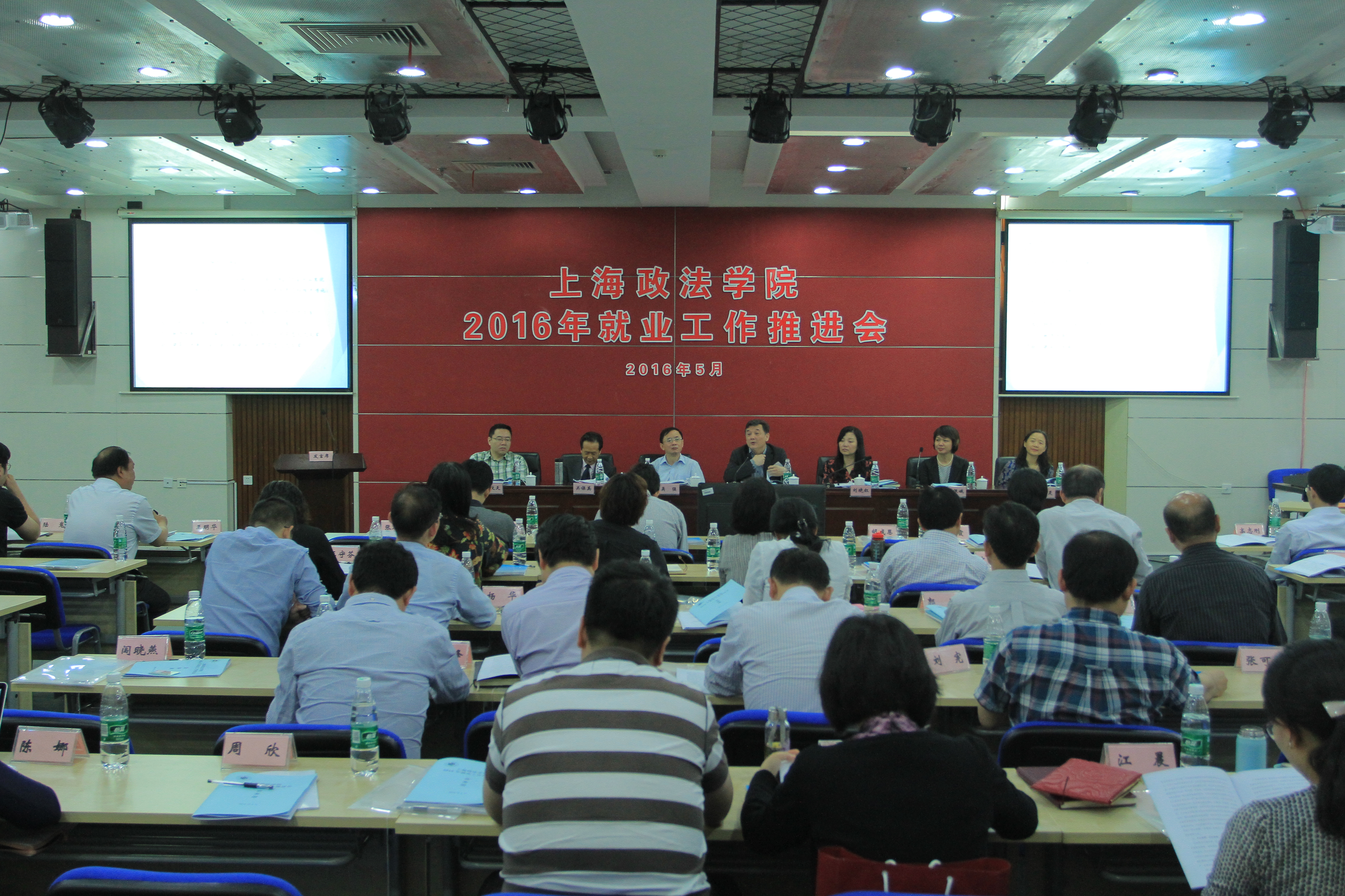 5月6日上午,上海政法学院2016年就业工作推进大会在庸夫楼101会议室举行。学校全体党政领导班子成员,各职能部门负责人,各二级学院党政班子成员,全体辅导员100余人参加会议。校党委书记杨俊一主持会议。