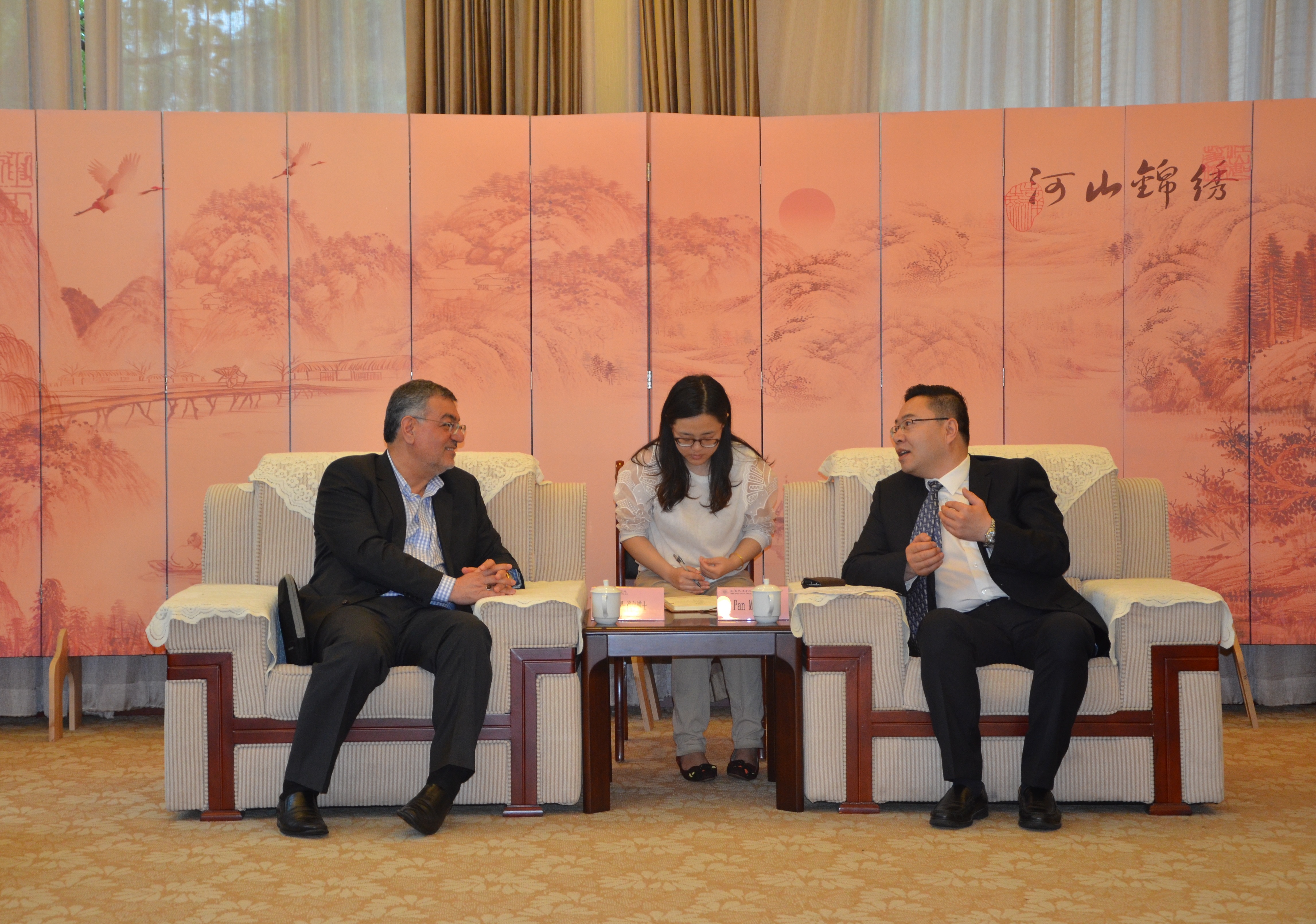 5月21日下午,在上海国际问题研究院西亚非洲中心张卫婷的陪同下,伊朗外交部国际研究与教育中心主任、伊朗政治与国际问题研究所(IPIS)总监哈迪•索雷曼-波尔,伊朗外交学院国际政治系副教授、原IPIS所长索赫拉•沙哈比,IPIS亚洲研究部主任阿里雷萨•考达•高利泼尔来我校作交流访问。潘牧天副校长会见了代表团一行,国际交流处处长王蔚、上海合作组织研究院院长袁胜育、最高人民法院“一带一路”司法研究基地主任盛红生、中国-上海合作组织国际司法交流合作培训基地建设办公室主任陈校、国际事务与公共管理学院副院长何奇松等参加了会见。会见结束后,我校专家学者与伊朗代表团进行了深入的会谈和学术探讨。