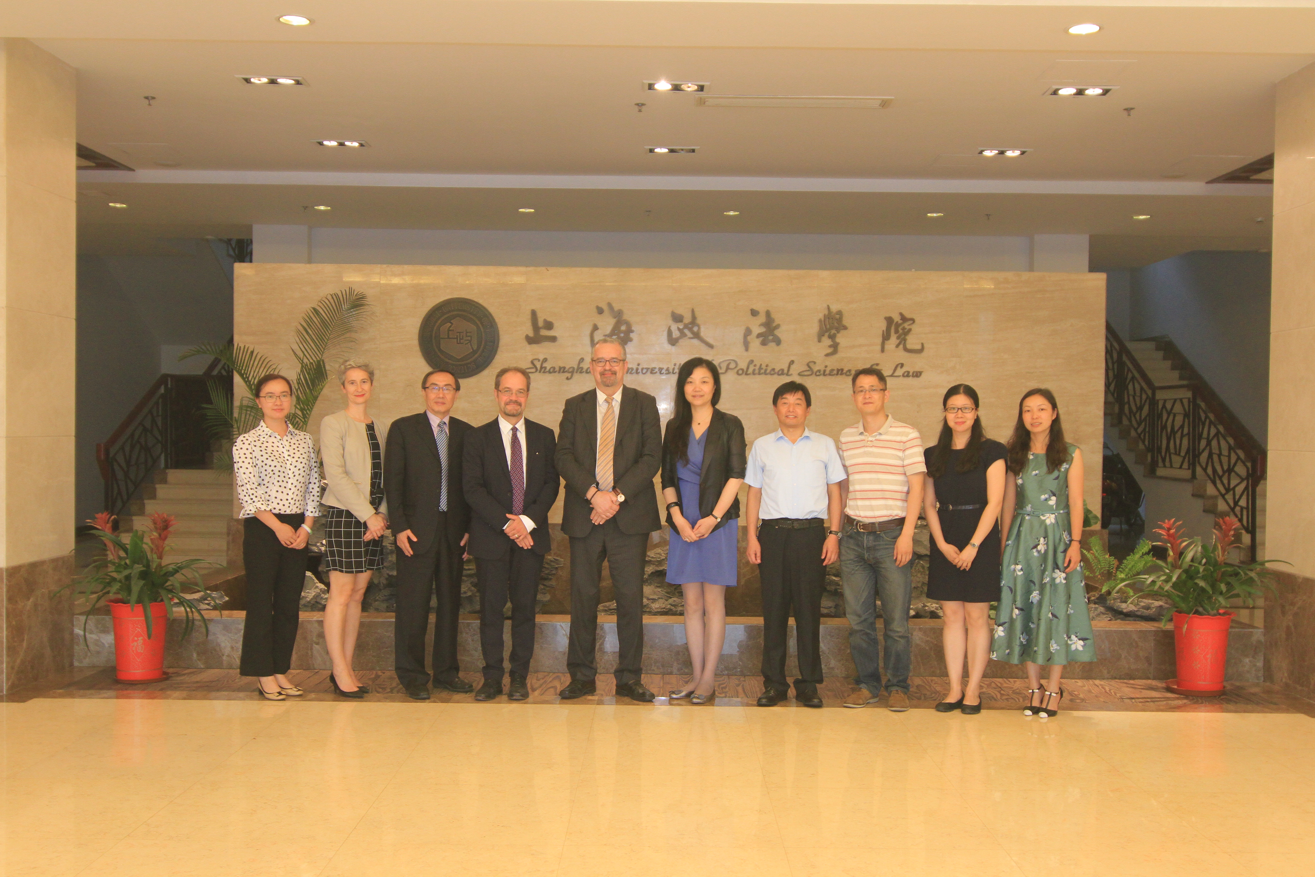 2016年6月15日,加拿大蒙特利尔大学副校长Guy Lefebvre教授、法学院院长Jean-François Gaudreault-Desbiens教授、副校长助理Catherine Agnes de Sainte Marie、中国项目负责人焦杰一行来我校进行交流访问。刘晓红校长会见了Guy Lefebvre教授一行,国际法学院党总支书记朱和平、上合培训基地建设办丁云宝博士、国际法学院张正怡博士、国际交流学院周怡、国际交流处王瑶等参加了会谈。