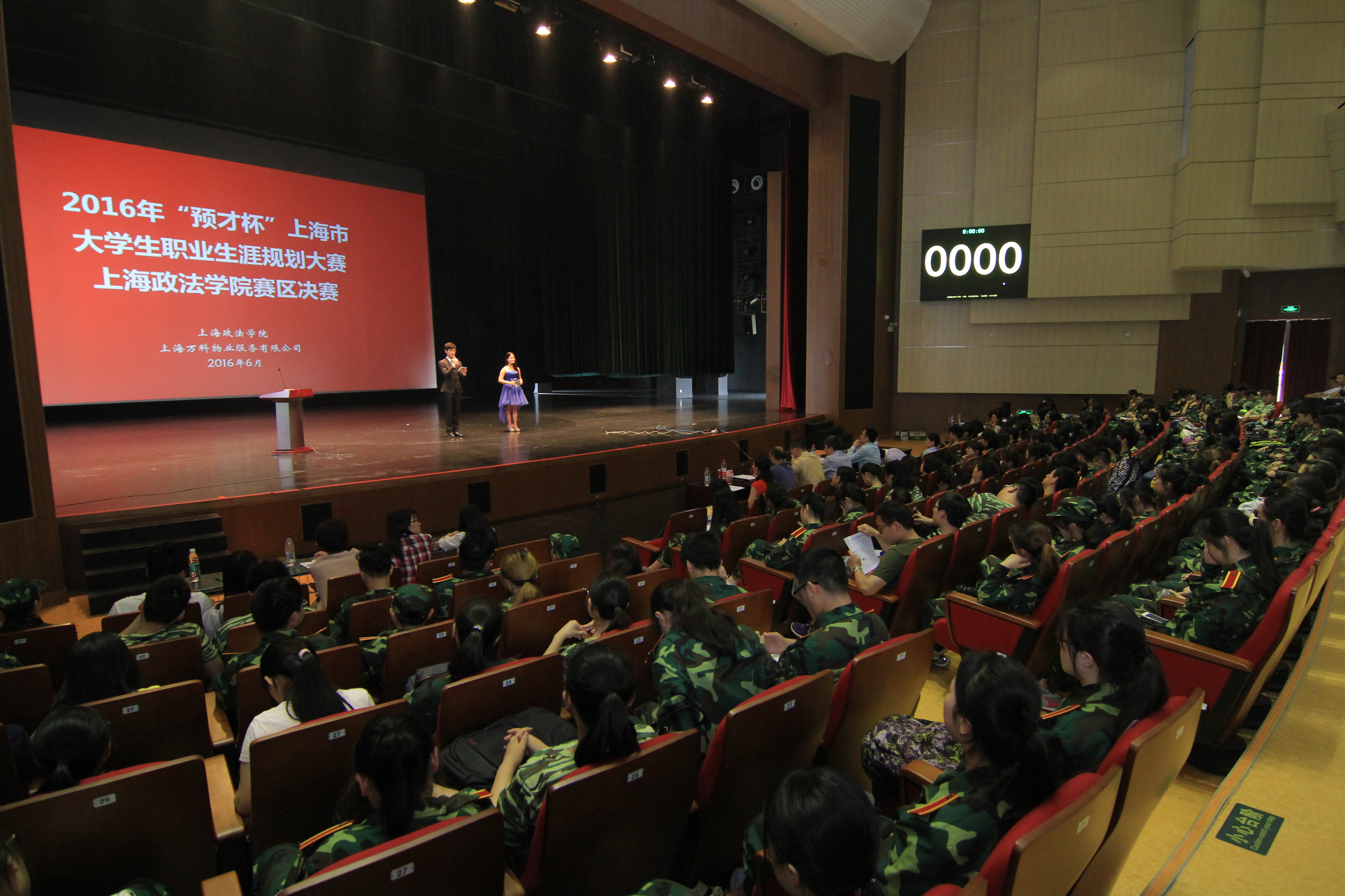 为进一步贯彻落实《关于加强上海大学生职业发展教育的实施意见》,引导大学生树立正确的成才观、就业观,科学合理地规划大学学习、生活和实践,在学工部的大力支持下,我校与上海万科物业服务有限公司于6月16日下午在学生礼堂共同举办2016年“预才杯”上海市大学生职业生涯规划大赛上海政法学院赛区决赛。上海市学生事务中心、上海万科物业服务有限公司人力资源部、中智上海经济技术合作公司旗下预才网等有关专家出席大赛并担任评委。相关职能部门负责人及各二级学院领导出席,2016级军训新生观摩了大赛。
