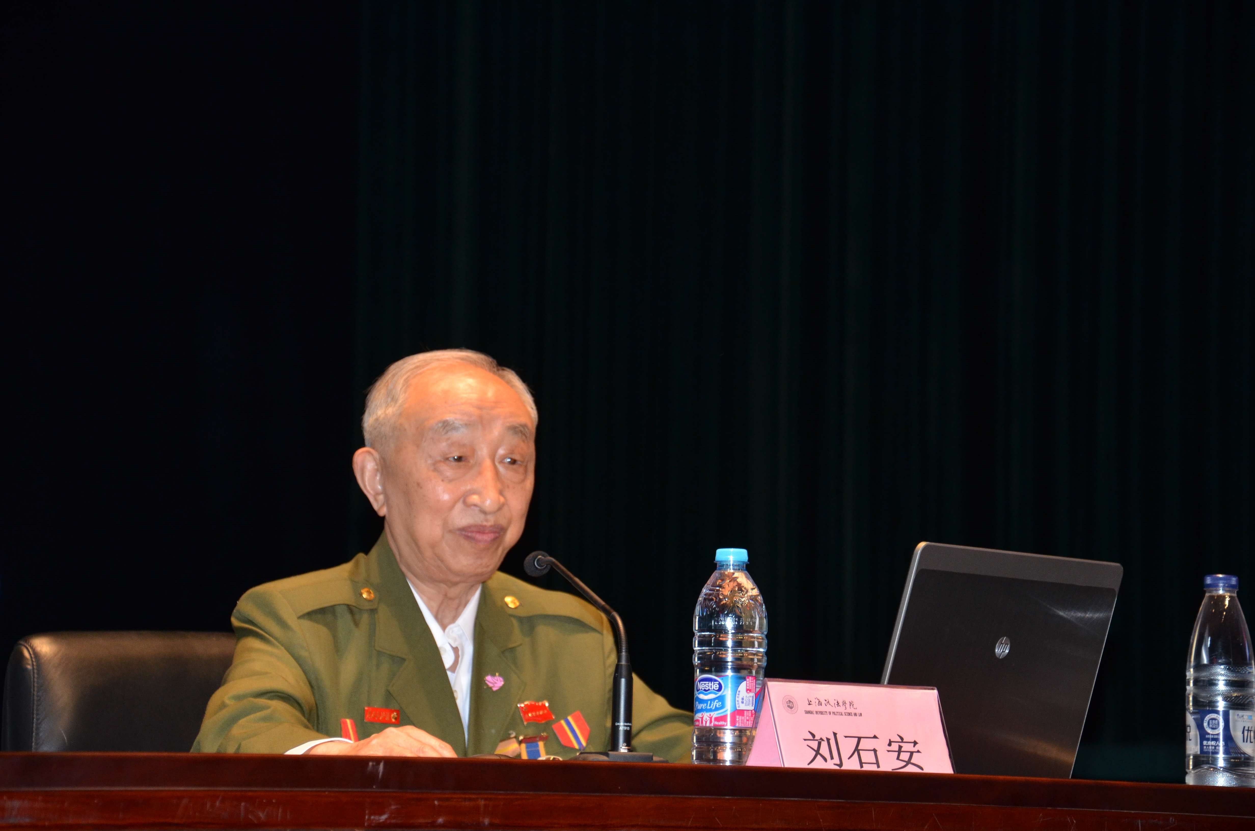 6月21日下午,由我校党委宣传部、保卫处、学工部联合主办的军训系列讲座之“志愿军老兵亲述战场故事”正式开讲。本次讲座有幸邀请到今年已经85岁高龄,参加过第二次战役(即著名的长津湖战役)、第五次战役和华川、金城反击战,在朝作战两年、立过战功五次的志愿军老兵刘石安老先生来校作题为《不怕豺狼驱虎豹,鲜红战旗美如画》的讲座,讲座设有主会场(学生礼堂)、分会场(比赛馆),共2000余名军训的学生参加,讲座由保卫处处长郭玉生主持。