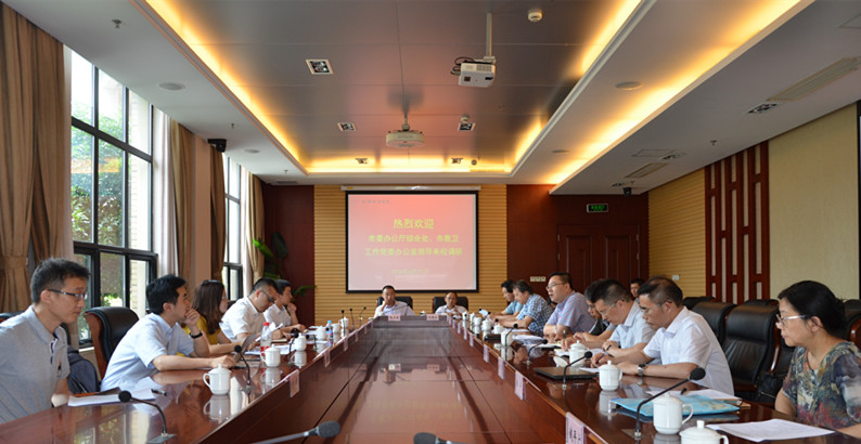 6月21日下午,市委办公厅综合处、市教卫工作党委办公室一行六人来我校专题调研智库建设情况。潘牧天副校长出席调研会,发展规划处、科研处、国际交流处、国际事务与公共管理学院等相关部门负责人、智库专家学者20余人参加了会议。