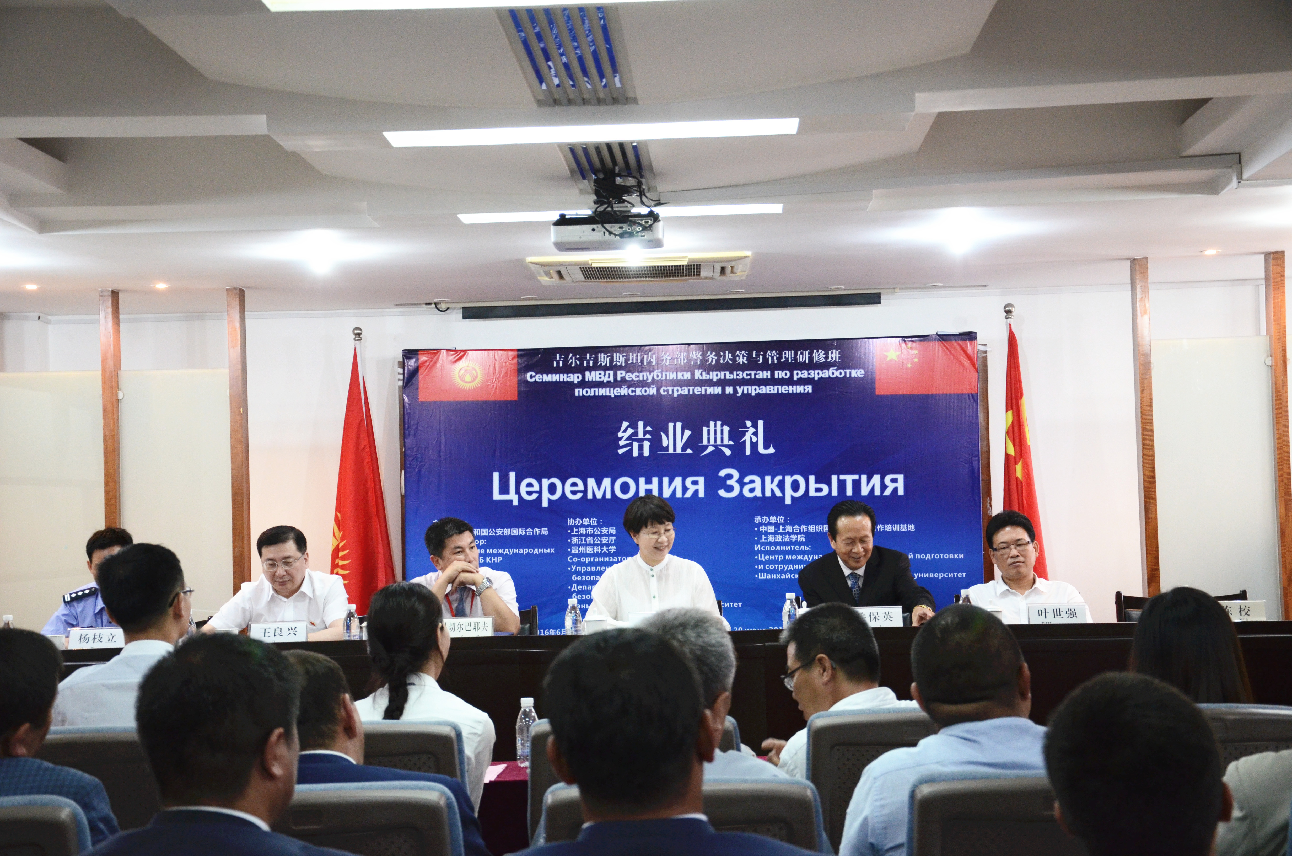 2016年7月1日,吉尔吉斯斯坦内务部警务决策与管理研修班结业典礼在浙江温州医科大学隆重举行。出席典礼的中方人员有温州医科大学校长吕帆、副校长王良兴,上海政法学院副校长关保英,温州市政府副秘书长叶世强,温州市公安局党委委员、浙江安防职业技术学院副院长、纪委书记杨枝立等。中国-上海合作组织国际司法交流合作培训基地(简称“培训基地”)建设办主任陈校主持结业典礼。