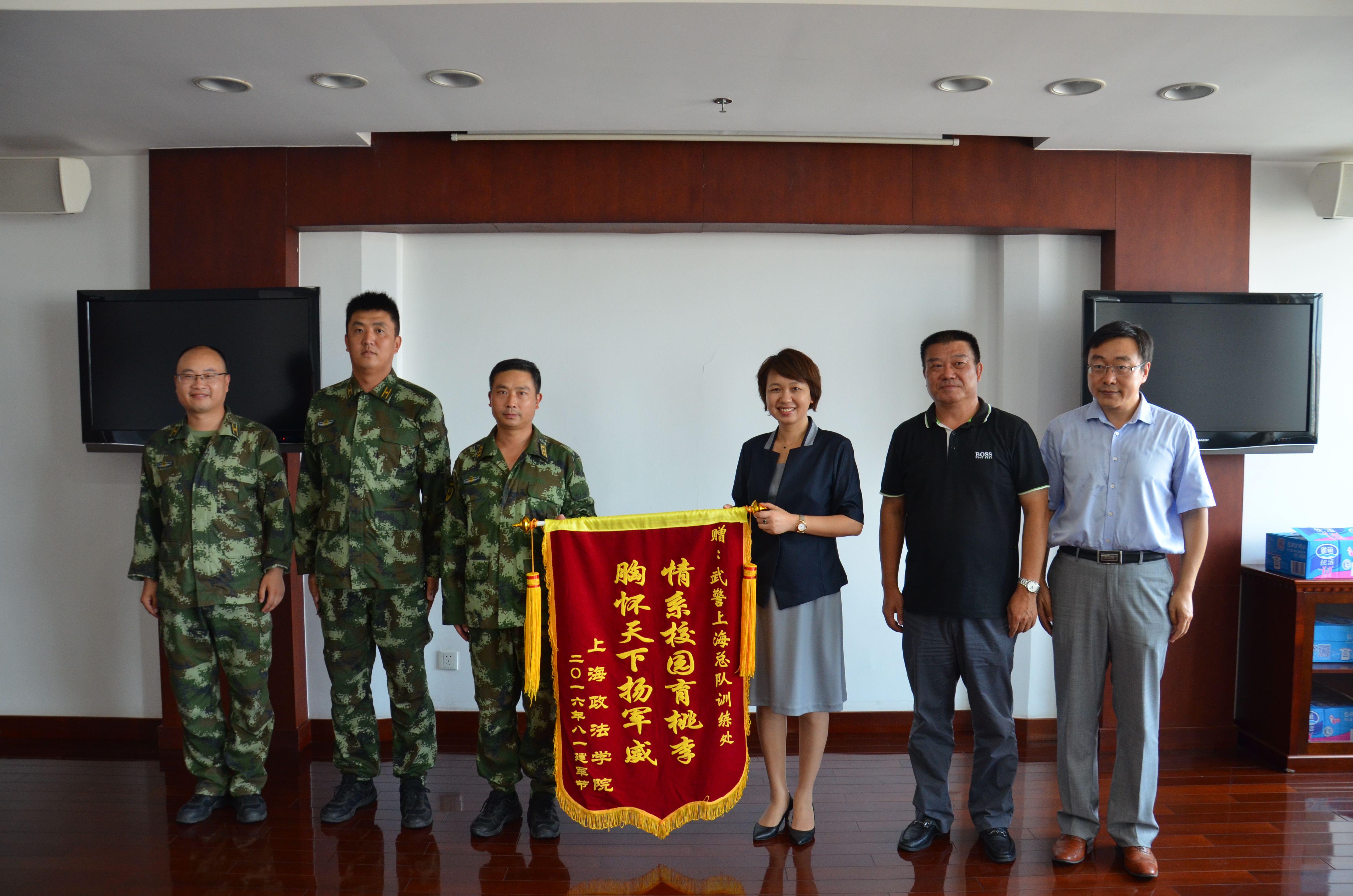 “八一”建军节即将来临之际,校党委副书记、副校长周银娥率学工部部长刘志强、保卫处处长郭玉生赴武警上海市总队训练处及二支队二大队走访慰问。