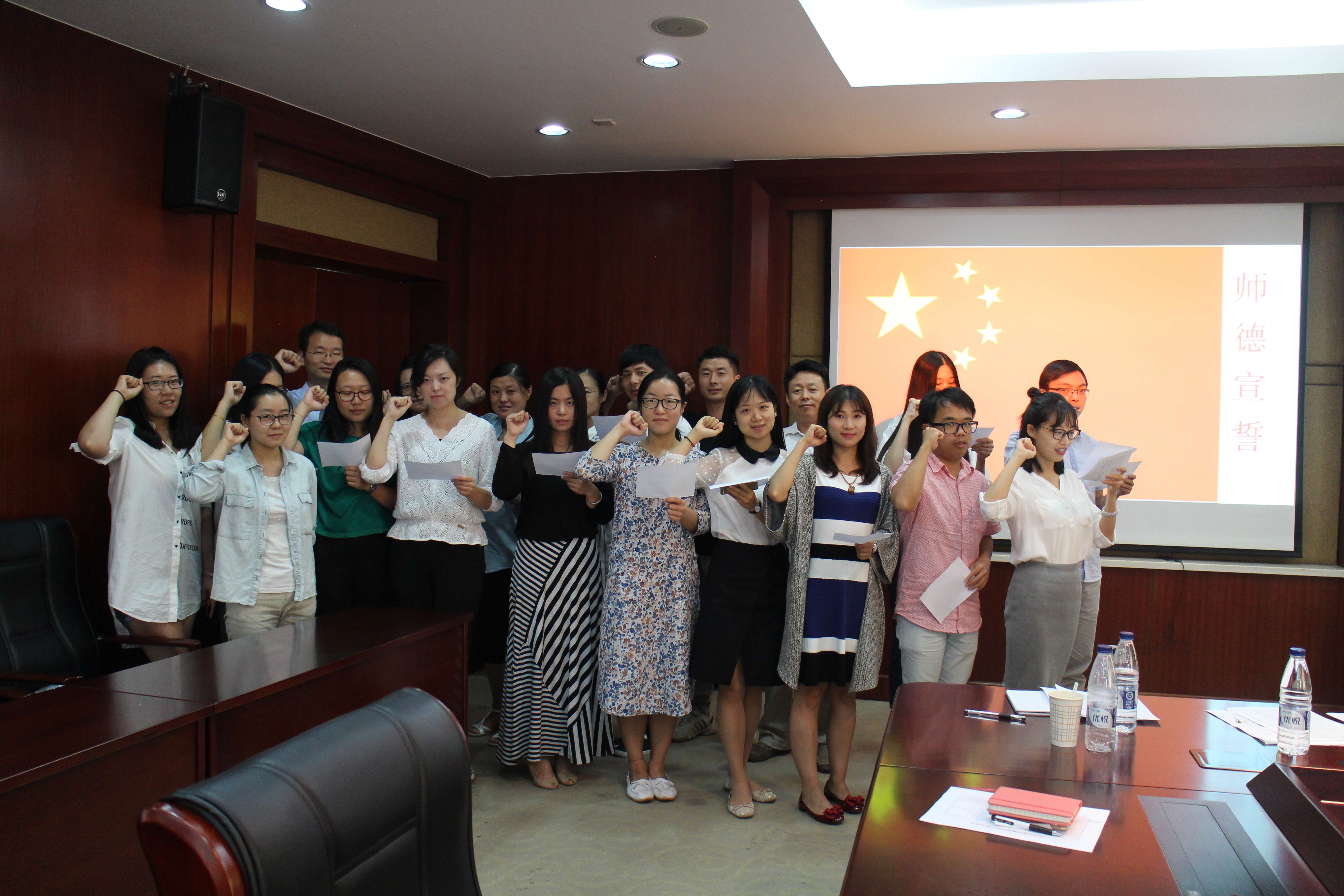 最后,卫磊同志主持了新进教师师德宣誓暨师德公约书签署仪式。法律学院新进教师张西恒带领全体新进教师面向国旗庄严宣誓:“加入人民教师队伍,忠于人民的教育事业,履行教师的神圣职责,贯彻国家教育方针,全面实施素质教育。热爱学生,为人师表;追求真理,崇尚科学;依法执教,教书育人;勤勉敬业,严谨治学;团结协作,甘于奉献;终身学习,勇于创新。做学生的良师益友,铸教师高尚人格。为中华民族的伟大复兴,为人类社会的文明进步,献出全部力量!”师德宣誓结束后,每一位新进教师都签署了师德公约书。