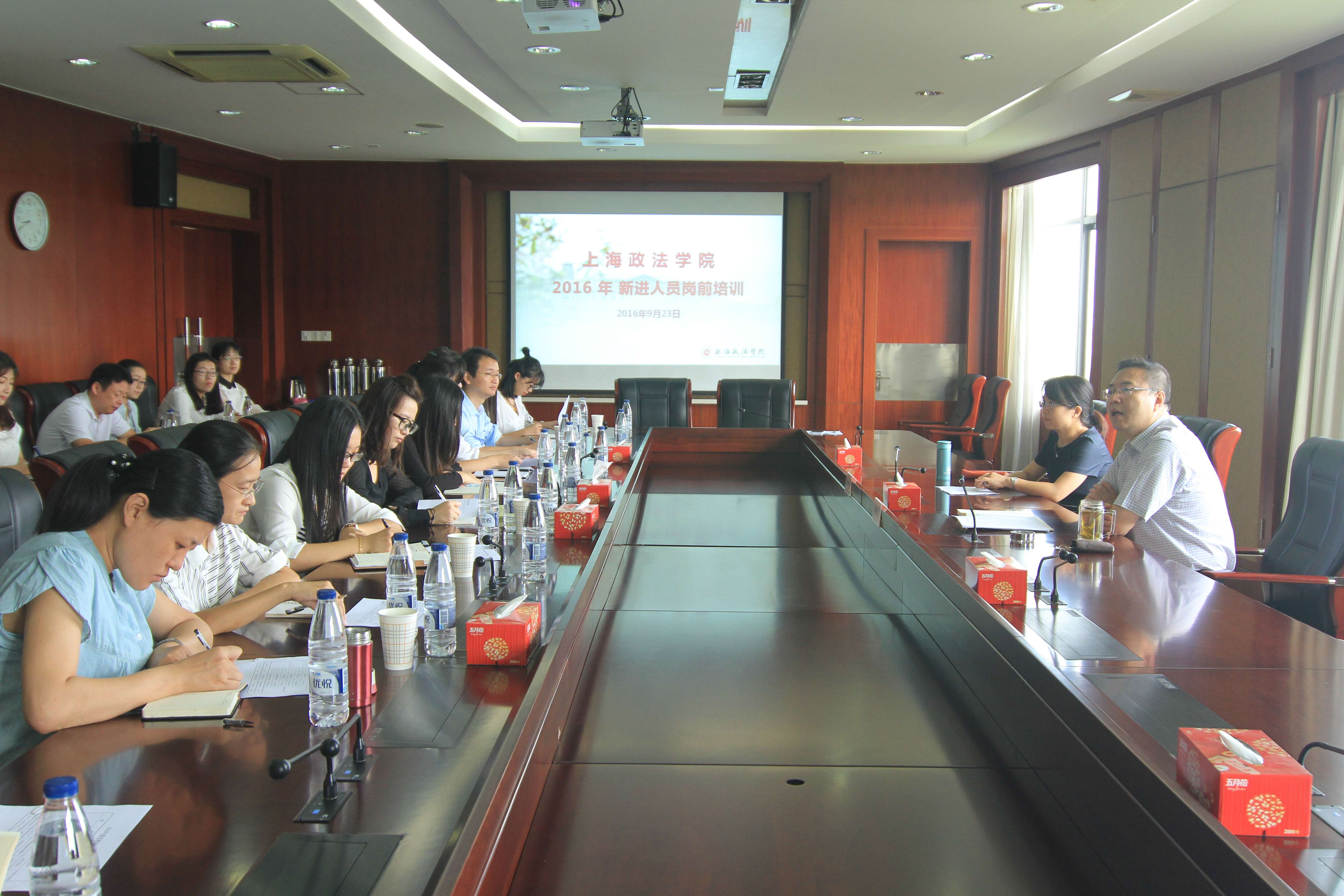 培训伊始,潘牧天副校长首先代表学校对今年新进教师表示热烈的欢迎;随后,从学校的发展历史、发展现状以及发展方向三个方面介绍了学校的基本情况,阐述了学校的办学理念,描绘了学校未来发展的美好前景;最后,对新进教师提出五点期望:第一,要“两条腿走路”,既要做好教育教学,又要搞好科学研究,做到教学科研并行不悖;第二,要“两方面育人”,既要知识育人,也要品德育人,培养学生明辨是非的能力;第三,要“爱岗敬业,诚信建树”,要忠诚于教育事业,坚决抵制不诚信行为;第四,要“发扬团队精神”,通过协同合作提高教育教学和科学研究质量;第五,要“爱校荣校,和谐进取”。希望各位教师能够秉承几代上政人的优良传统,积极维护学校及教师自身形象,和谐进取,做一名出色的上政人。