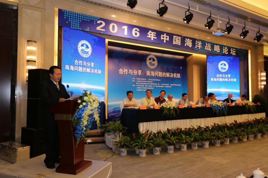 2016年9月23-25日,以“合作与分享:南海问题的解决机制”为主题的中国海洋战略海洋高峰论坛在浙江象山召开,本次论坛由中国海洋战略论坛、上海市社会科学界联合会共同主办,中共中央党校、最高人民法院“一带一路”司法研究基地、上海市法学会海洋法治研究会、复旦大学海洋资源法律与政策研究基地(筹)、宁波大学、上海政法学院、上海海洋大学、大连海事大学等单位参与承办、协办。