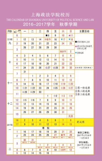 2016—2017学年校历