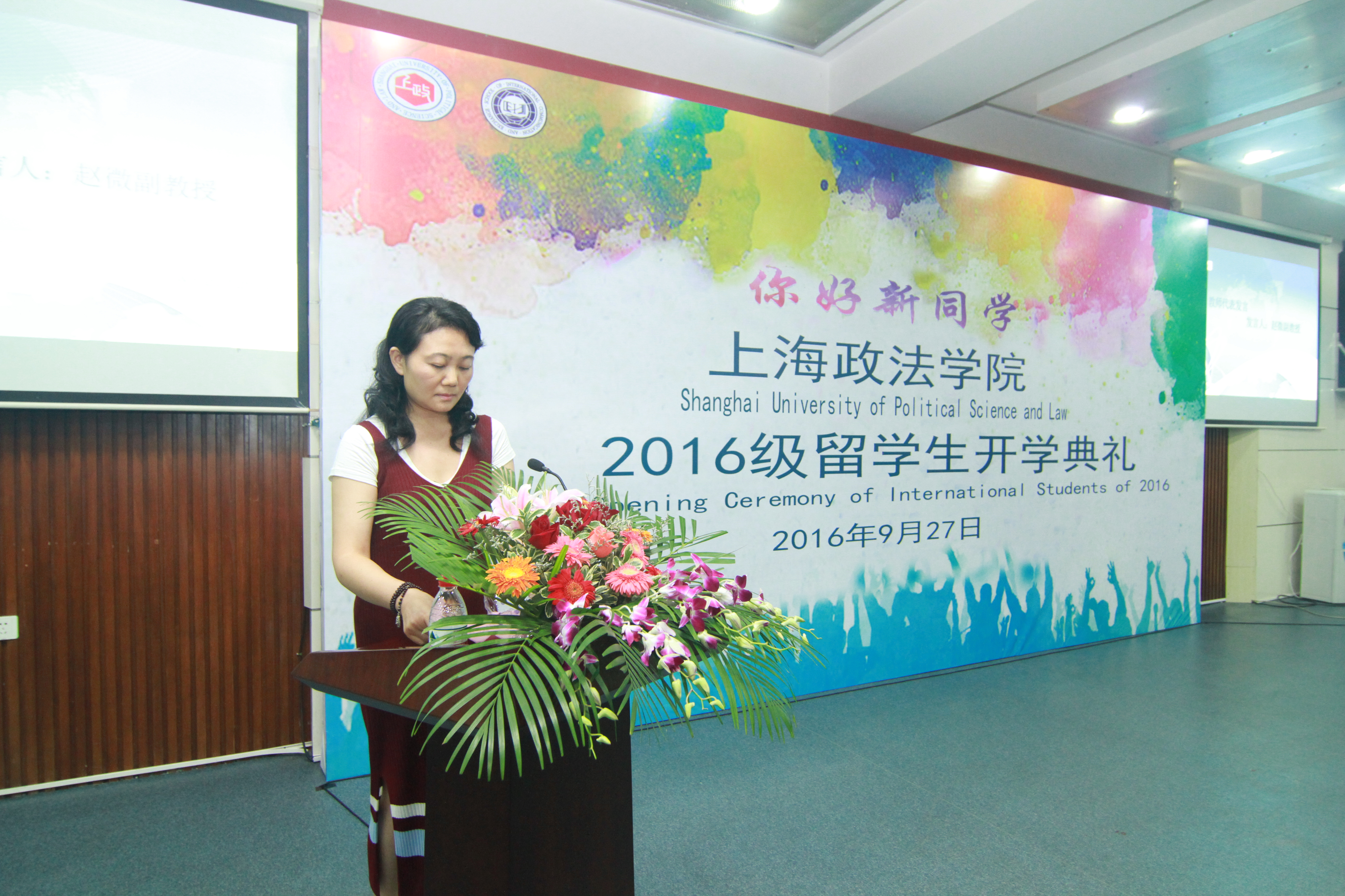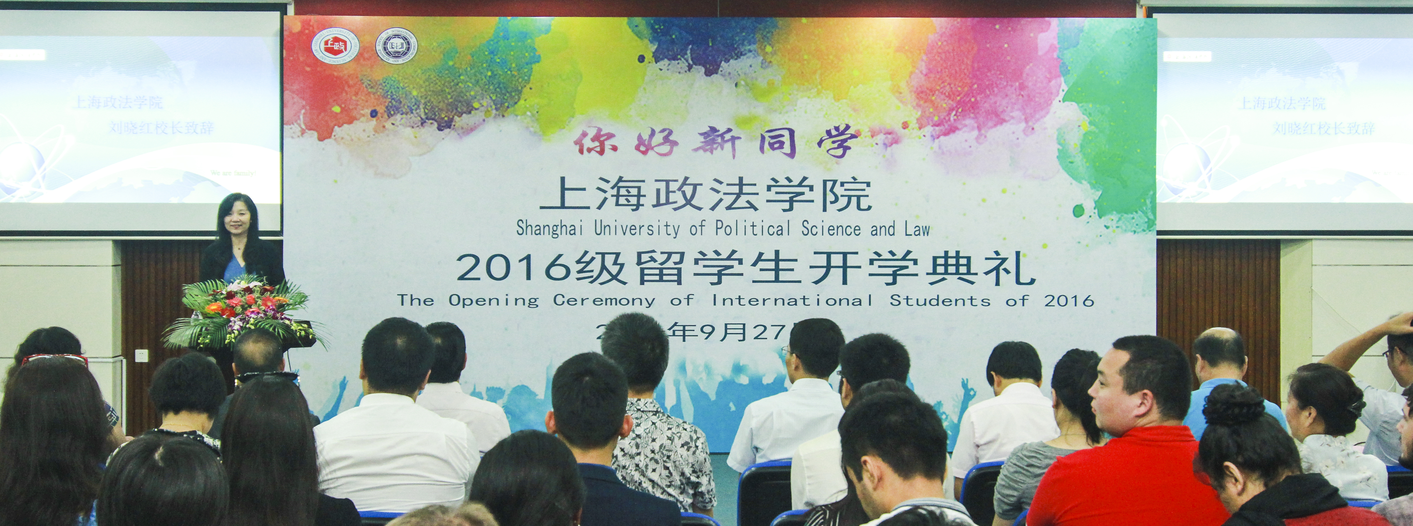9月27日下午,上海政法学院2016级留学生开学典礼在庸夫楼101会议室隆重举行。校长、博士生导师刘晓红教授,副校长、博士生导师关保英教授,各职能部门和二级学院负责人,教师代表,国际交流学院全体教职工,在校留学生及2016级全体留学生新生出席了典礼。典礼由国际交流学院院长欧阳美和教授主持。