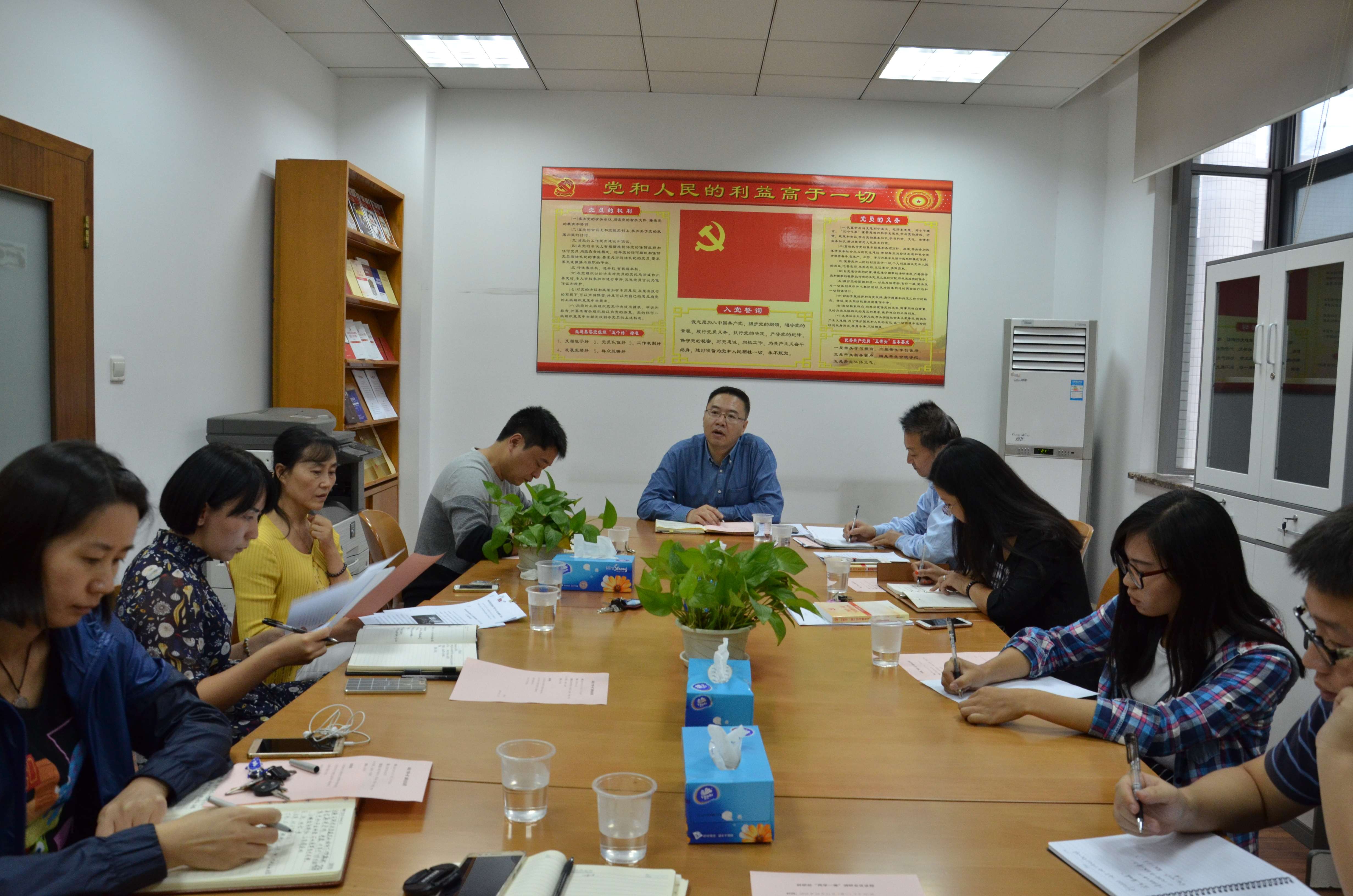 10月11日下午,潘牧天副校长在求实楼216会议室主持召开科研处落实“一岗双责”、推进“两学一做”专题会,科研处处长张远新、副处长赵运锋等全体成员参加会议。