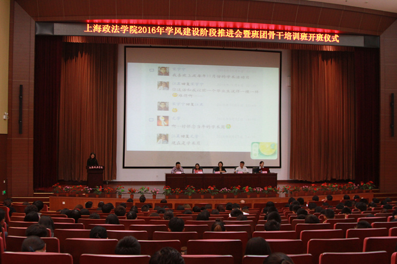 10月11日下午,2016年学风建设阶段推进会暨2016级班团骨干培训班开班仪式在天马讲堂召开。校党委副书记、副校长周银娥出席大会。学工部、团委及二级学院相关负责人、全体辅导员、学生党支部书记及班团干部参加了会议。