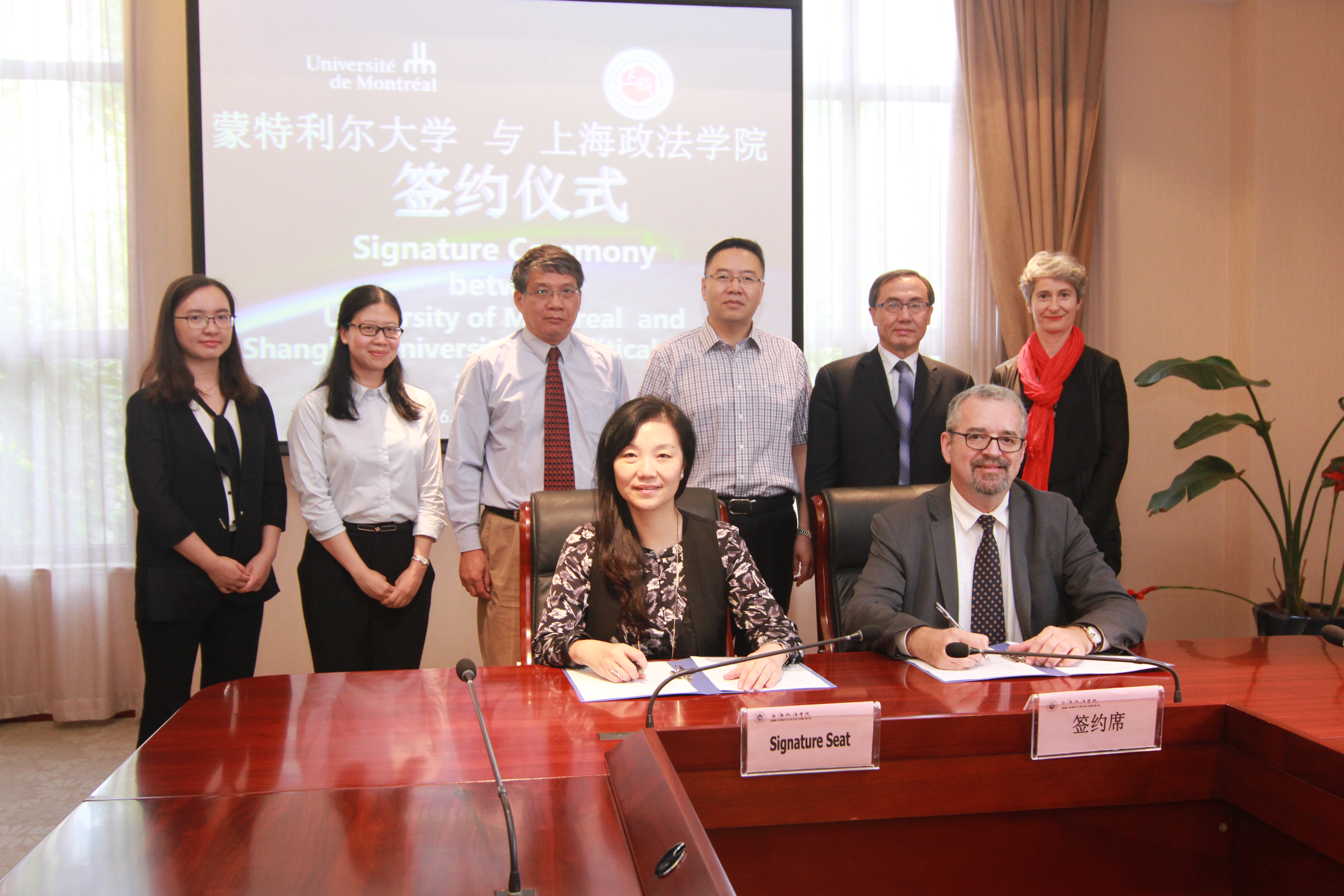 10月11日下午,加拿大蒙特利尔大学代表团第二次访问我校,经过前期准备与深入协商,两校正式签署合作备忘录。我校刘晓红校长、潘牧天副校长、国际交流处王蔚处长,加拿大蒙特利尔大学Guy Lefebvre副校长、校长助理De Sainte Marie-Villemer Catherine女士、中国项目负责人焦杰先生共同出席了签约仪式。
