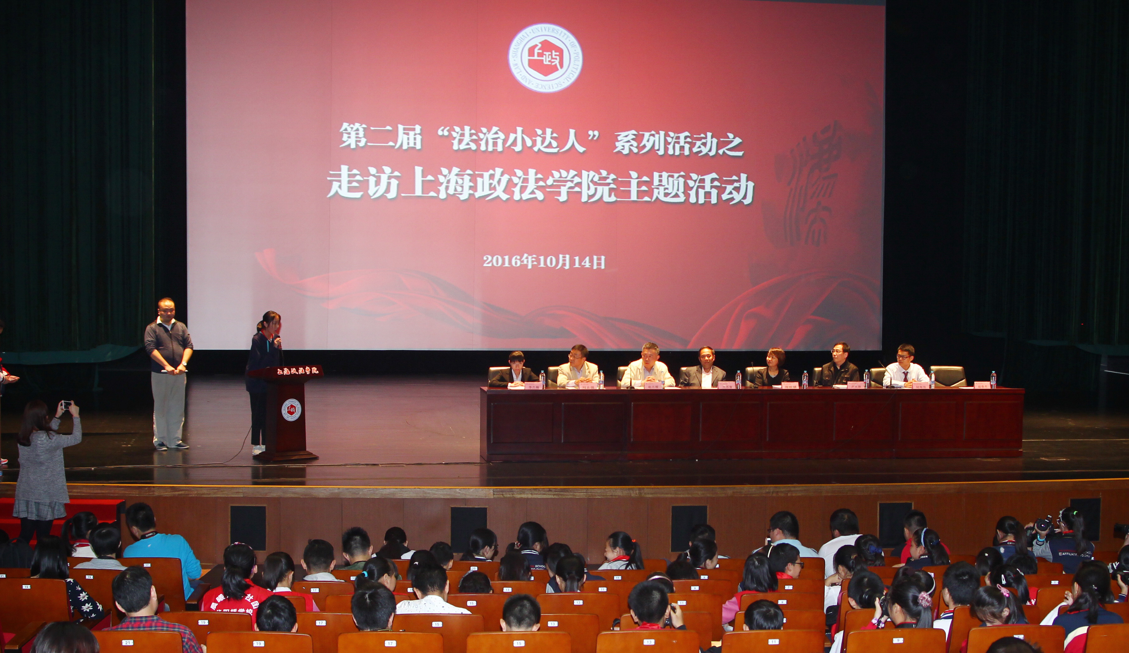 10月14日,我校迎来了来自青浦、松江、奉贤、徐汇、金山5个区的共220名中小学“法治小达人”及其带队教师。上海政法学院党委副书记、副校长周银娥,上海法治报社长吴苏青,上海市教卫工作党委法宣办常务副主任卢天琳,上海法治报副总编赵月樑,上海市教育委员会政策法规处处长助理陆海佳和上海政法学院学生处处长刘志强出席活动。