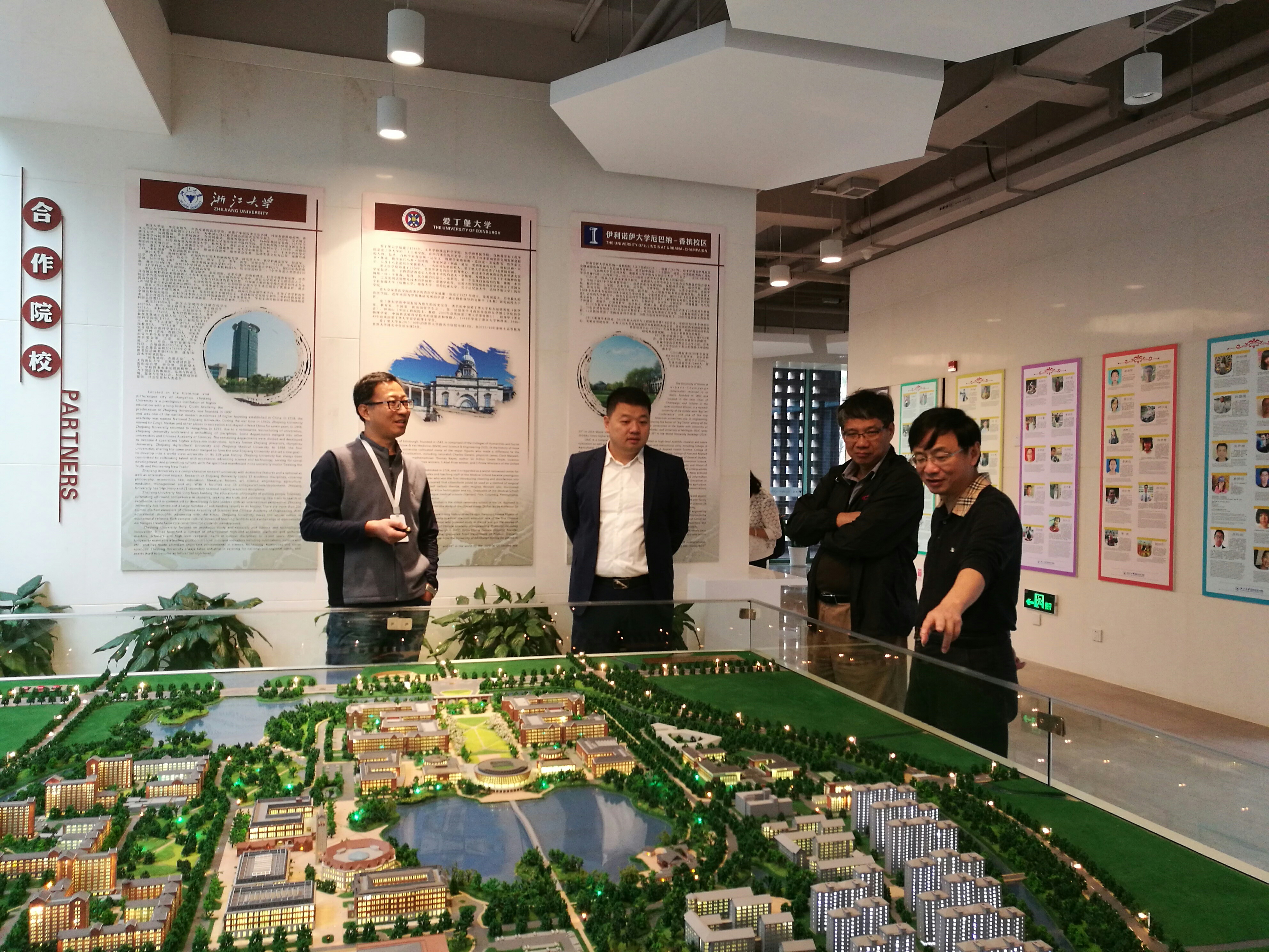 组织生活结束后,吴强同志带领全体人员前往浙江大学海宁国际校区考察访问。培训基地协调员、我校国际交流处处长王蔚,培训基地建设办主任陈校一同参加了考察活动。浙江大学校长助理、国际联合学院(海宁国际校区)党工委书记傅强热情接待吴强同志及培训基地一行。
