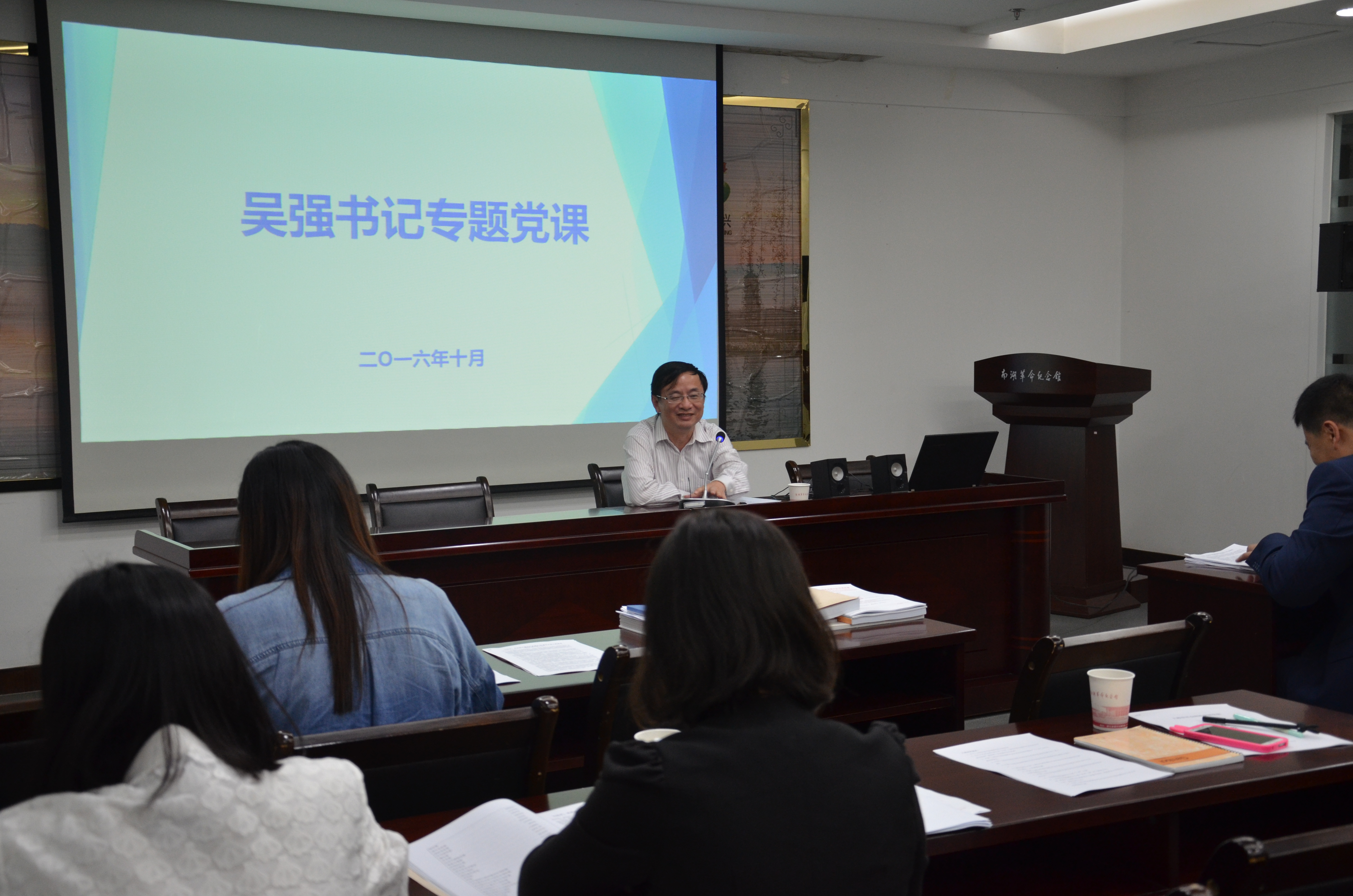 10月13日下午,校党委副书记、纪委书记吴强同志带领上合培训基地建设办公室党支部全体人员赴嘉兴南湖革命纪念馆开展组织生活,并为支部上党课。一行人首先参观了革命纪念馆,回顾党的发展历程,重温入党誓词。
