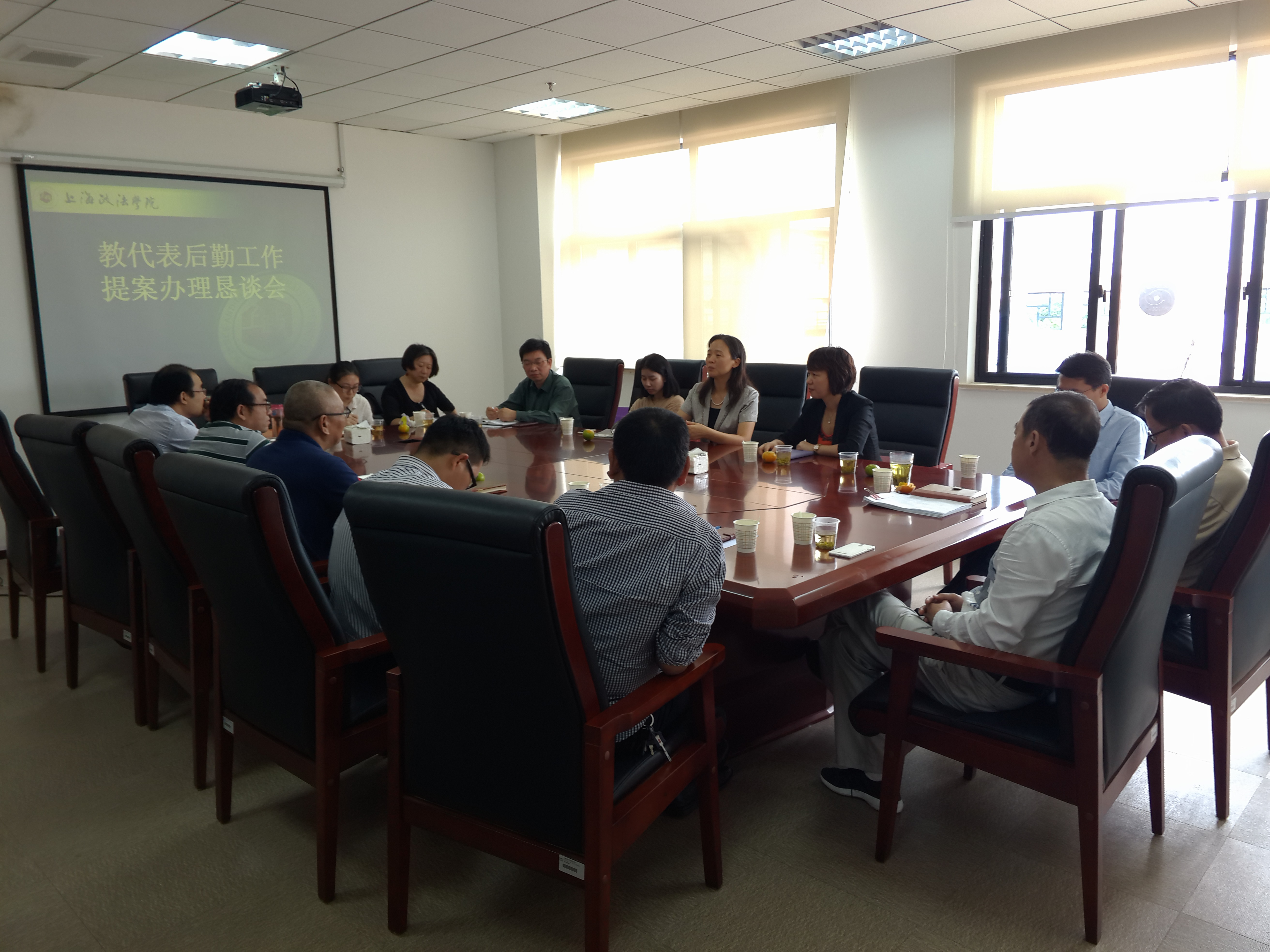 10月18日中午,教代表后勤工作提案办理恳谈会在校工会三楼会议室召开。校党委副书记、副校长、校工会主席周银娥,副校长胡继灵,提案工作委员会主任、两办主任高志刚及教代表、相关职能部门等共15人参加会议。